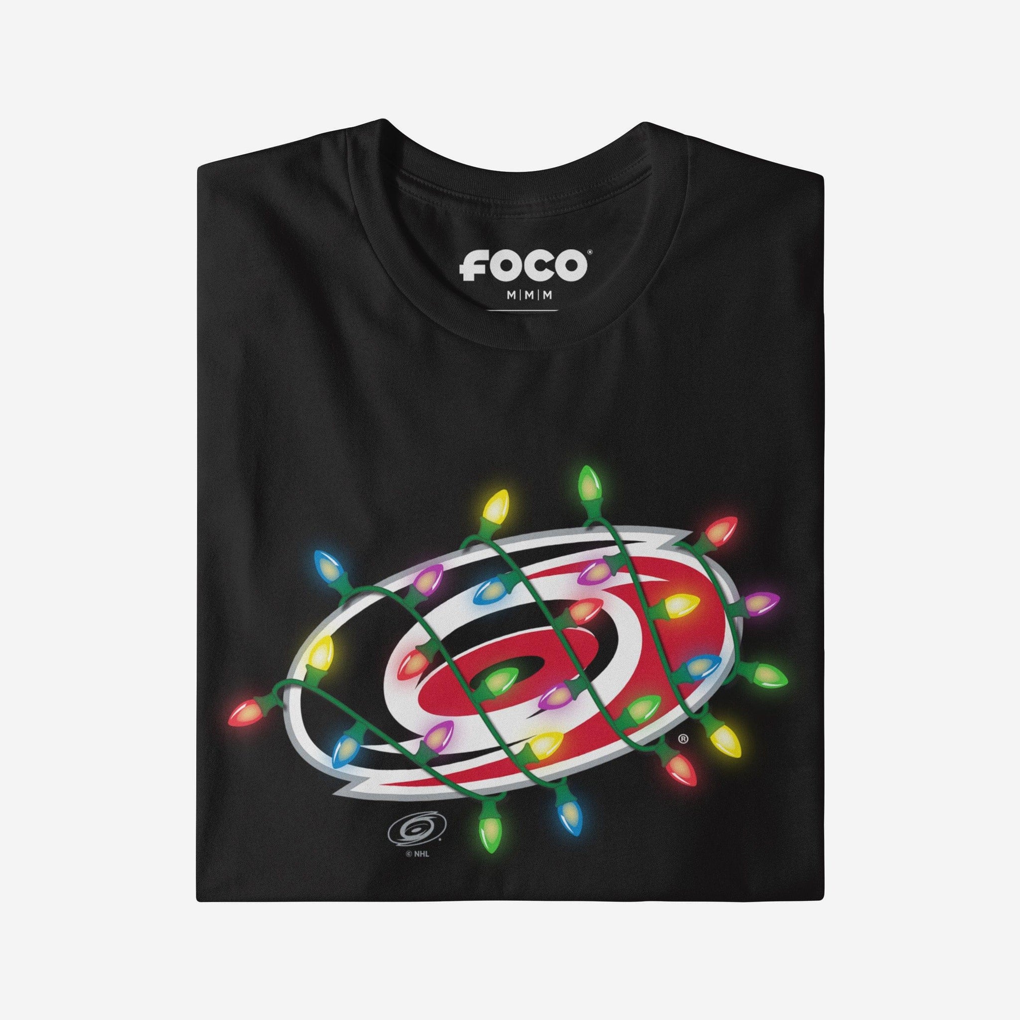 Carolina Hurricanes Primary Logo Holiday Lights T-Shirt FOCO S - FOCO.com
