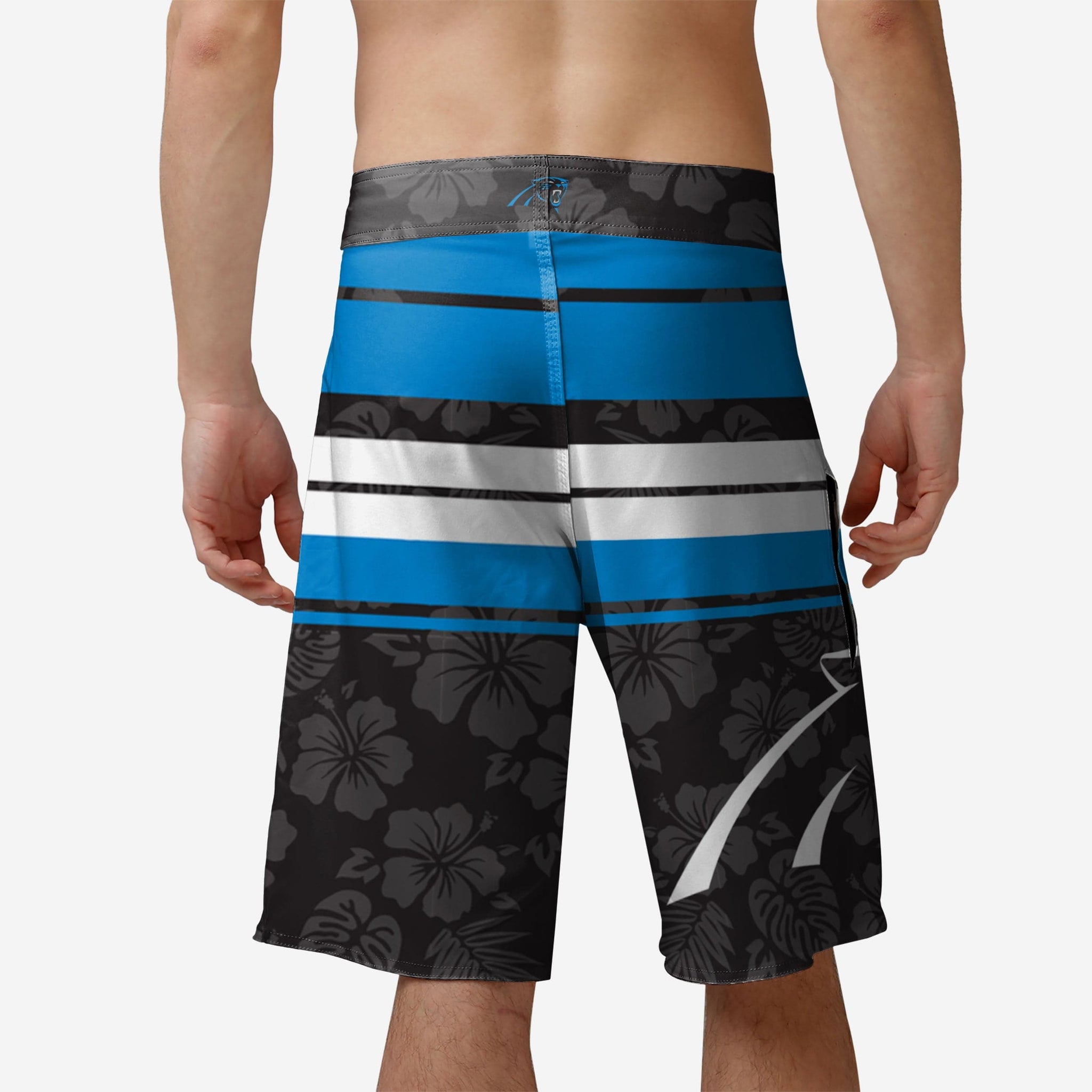 Carolina Panthers Hibiscus Boardwalk Stripe Boardshorts FOCO S - FOCO.com