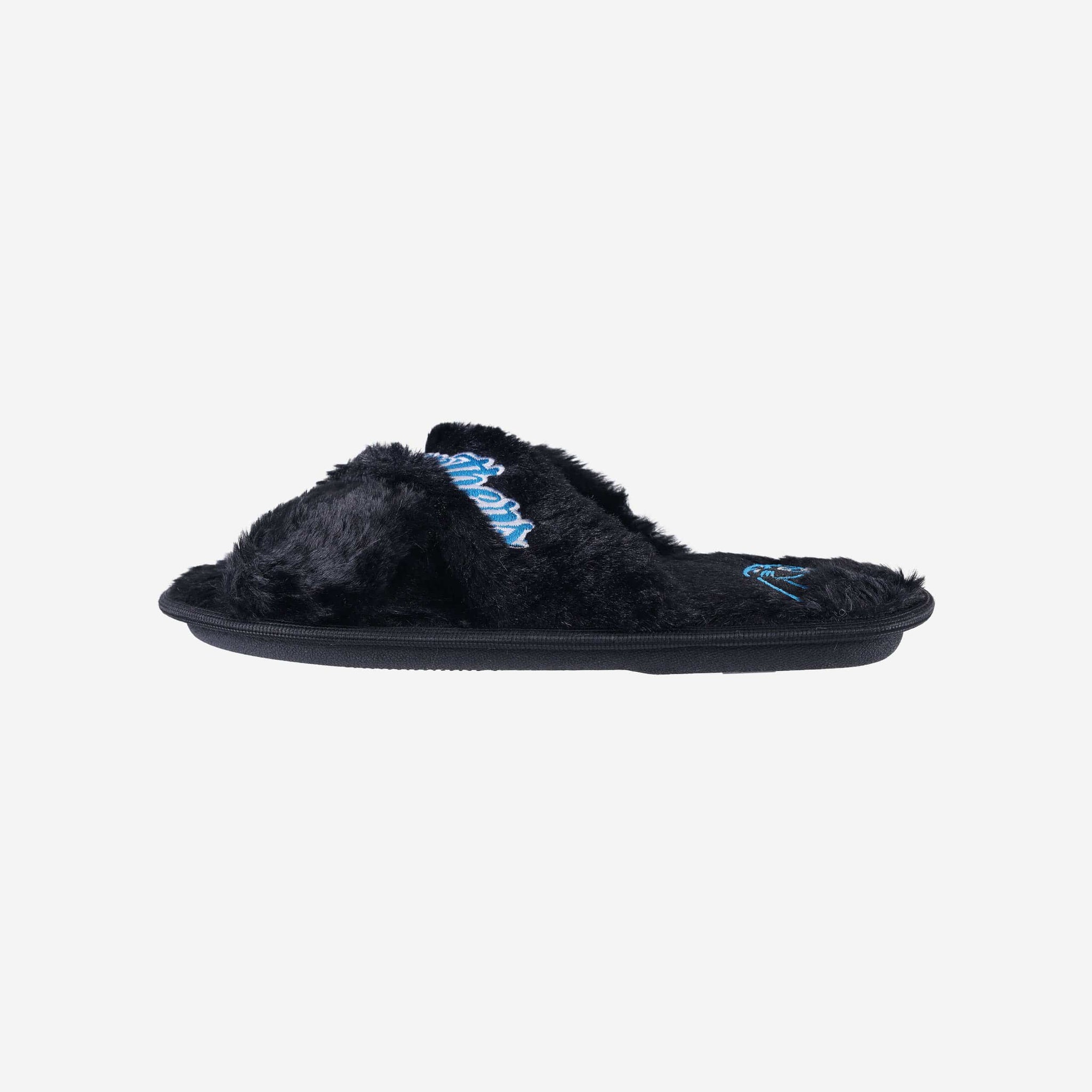 Carolina Panthers Womens Script Wordmark Fur Cross Slide