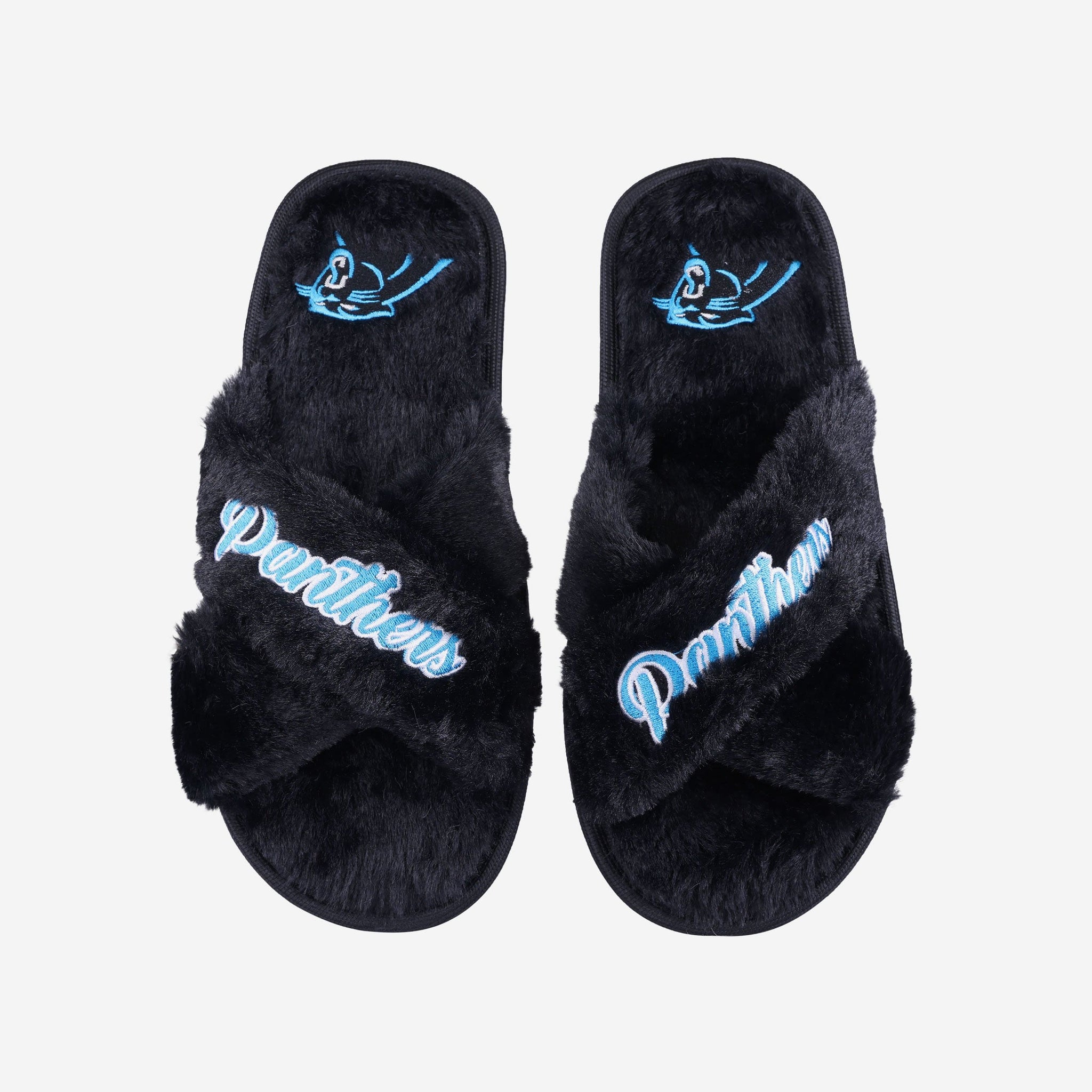 Carolina Panthers Womens Script Wordmark Fur Cross Slide FOCO S - FOCO.com