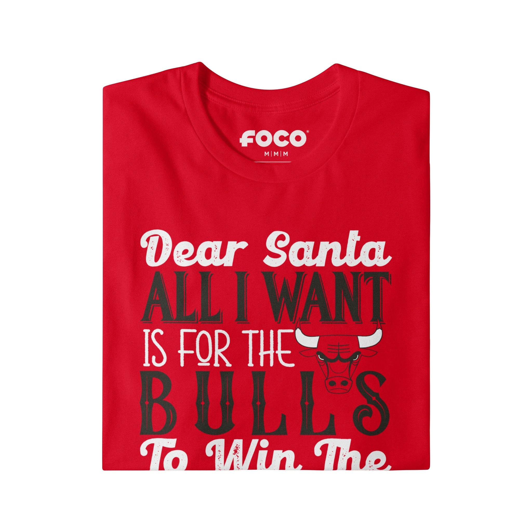 • Festive, team-colored design: This traditional t-shirt shows off the official Chicago Bulls colors in an all-over design with a festive message to Santa, so you can combine your team spirit with holiday spirit.