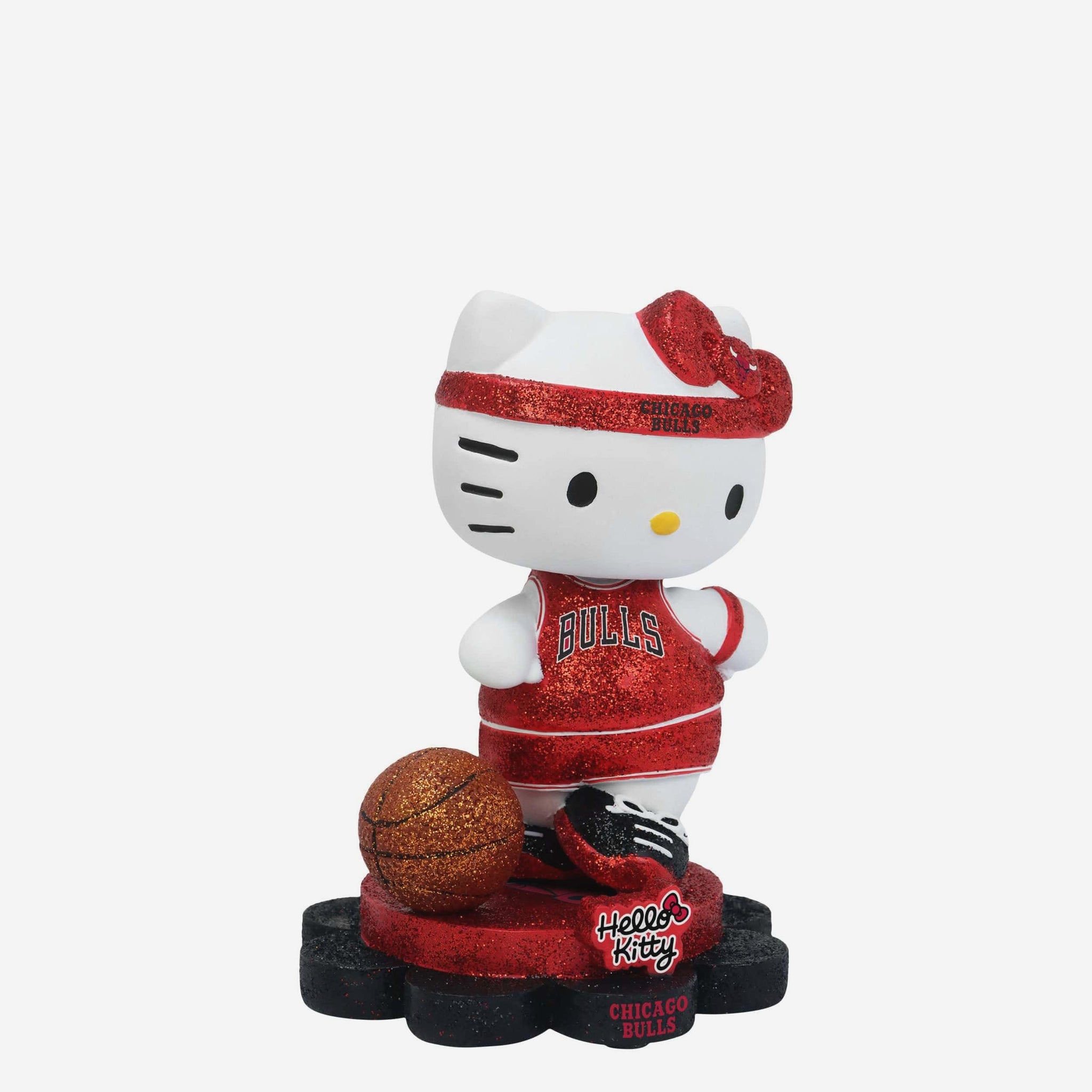 Cute, collectible, and courtside-ready! Hello Kitty® is officially hitting the hardwood and your collection in sparkle style with the Chicago Bulls Hello Kitty® Glitter Mini Bobblehead.