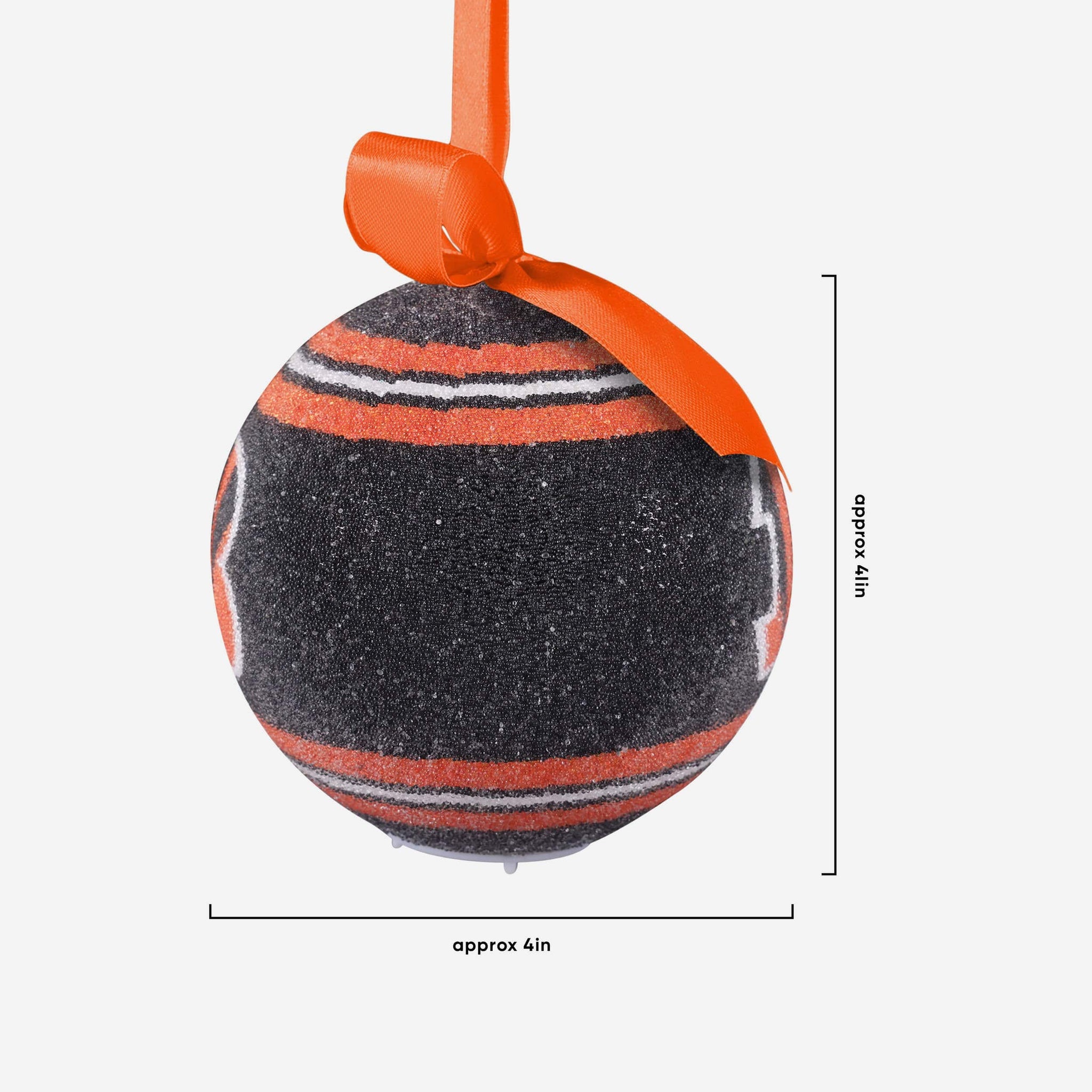 - Team-colored stripe accents on top and bottom of ornament to make your tree look extra awesome
