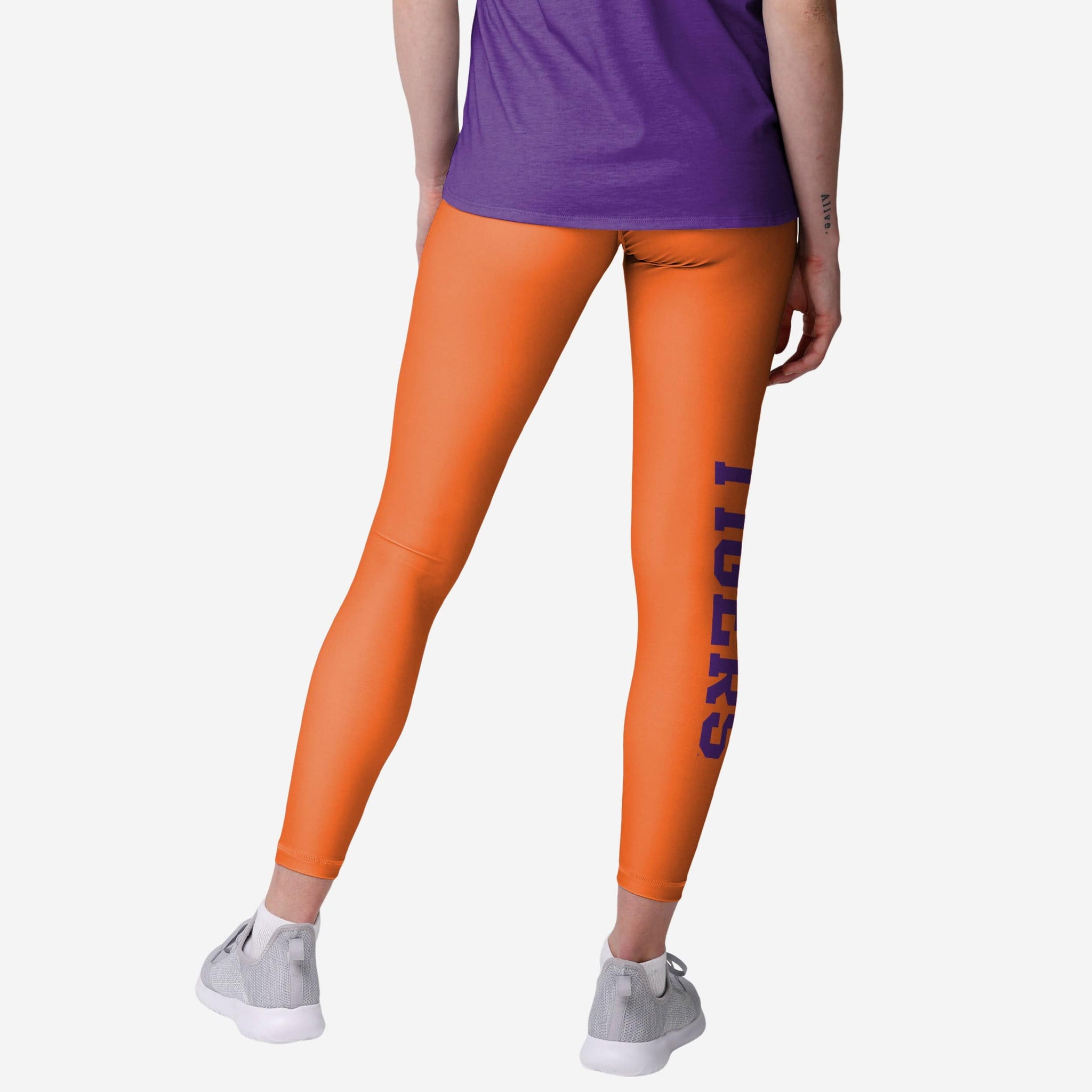 Your team pride isn't just great - It's leg-endary! Prove it by standing out on gameday and every day in these Clemson Tigers Women's Solid Big Wordmark Leggings.