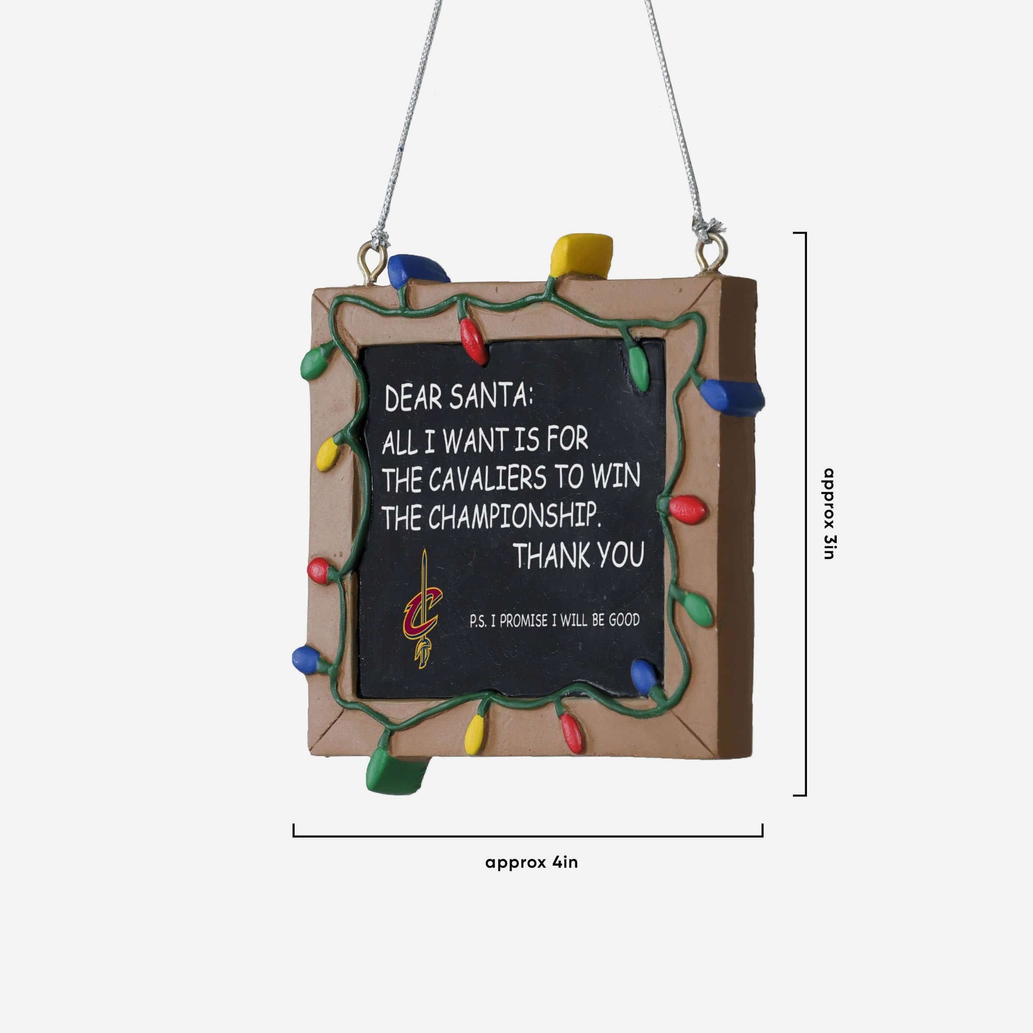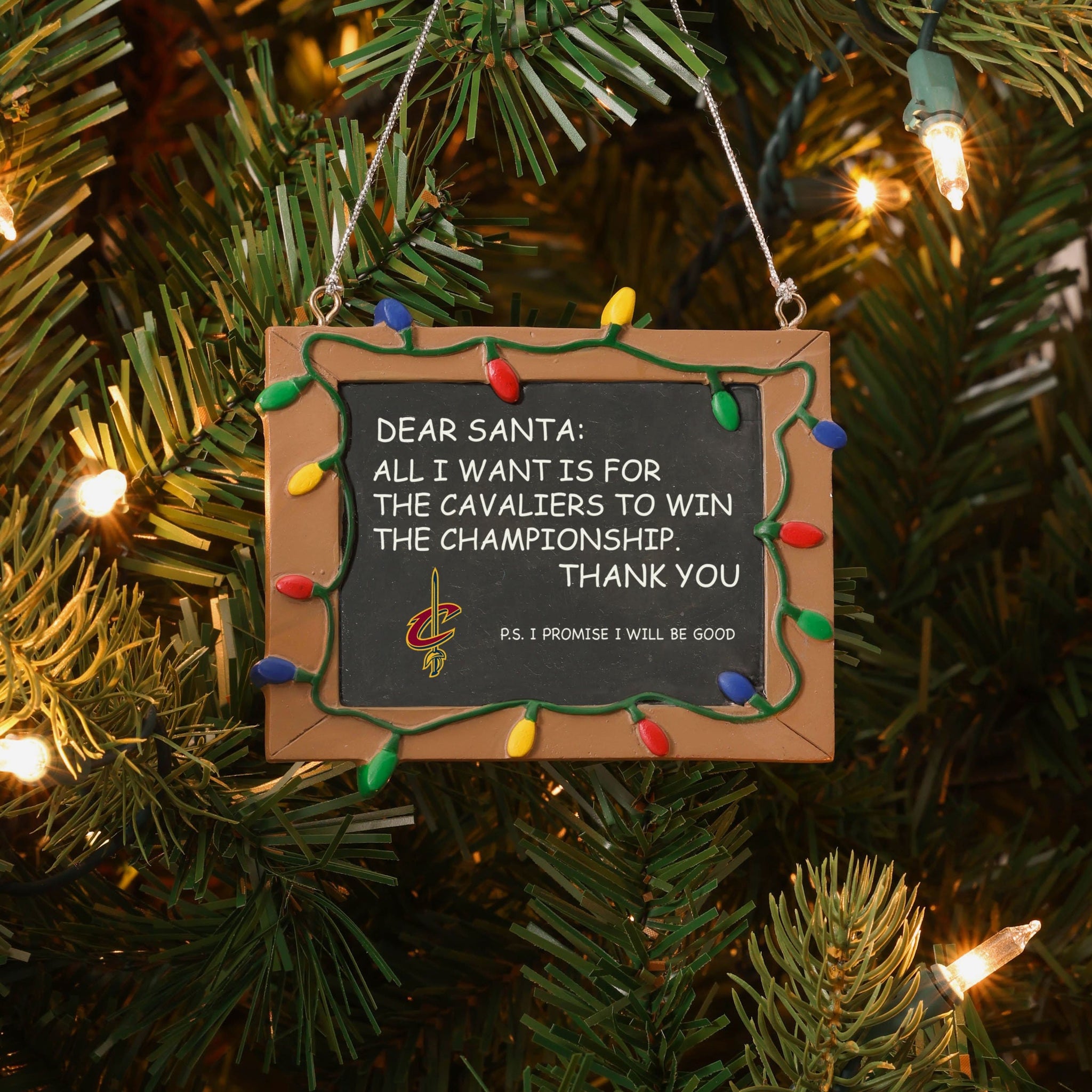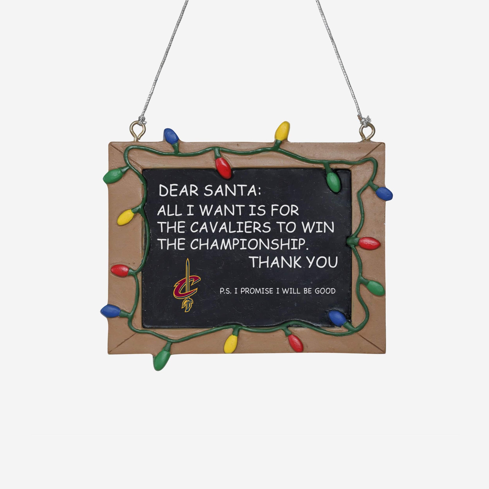 So, you made your list and sent it to jolly ol' Fanta Claus, asking him for a championship. But sometimes letters can get lost in the mail. Just in case, put this Cleveland Cavaliers Resin Chalkboard Sign Ornament on your tree to let him know how good you've been this year, and that all you want for the holidays is a trophy.