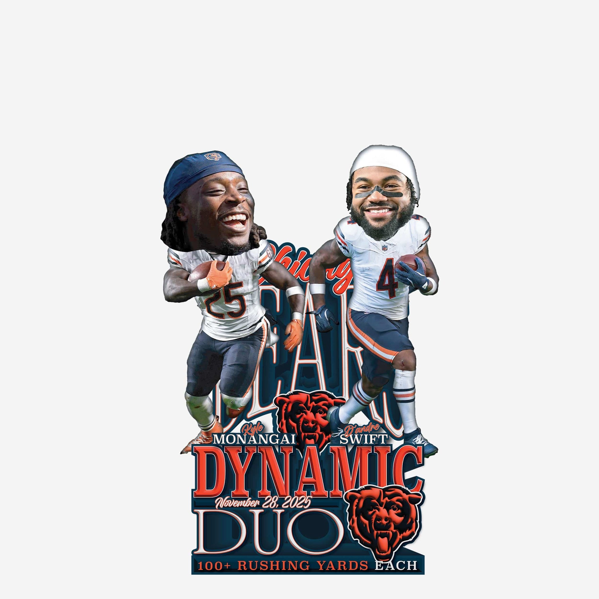 Celebrate a record-setting ground game with this D'Andre Swift & Kyle Monangai Chicago Bears 100+ Yard Rusher Dynamic Duo Bobblehead, honoring the backfield pair that ran wild and kept the chains moving all day long.