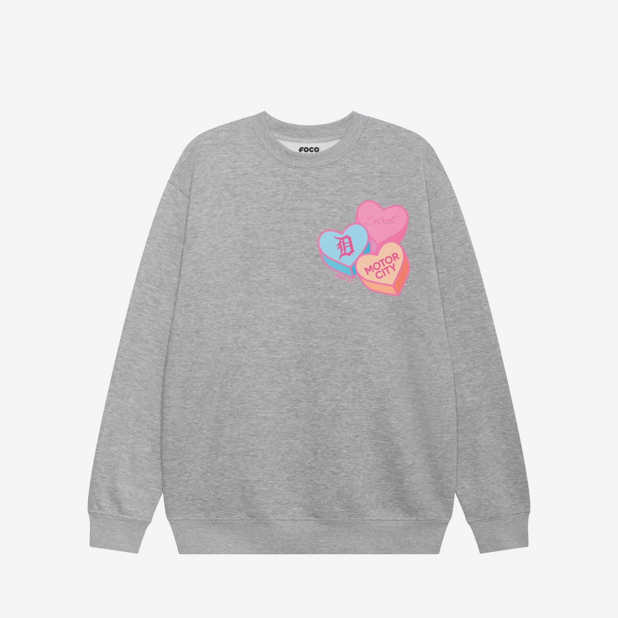 Detroit Tigers Candy Heart Crew Neck Sweatshirt FOCO Athletic Heather S - FOCO.com