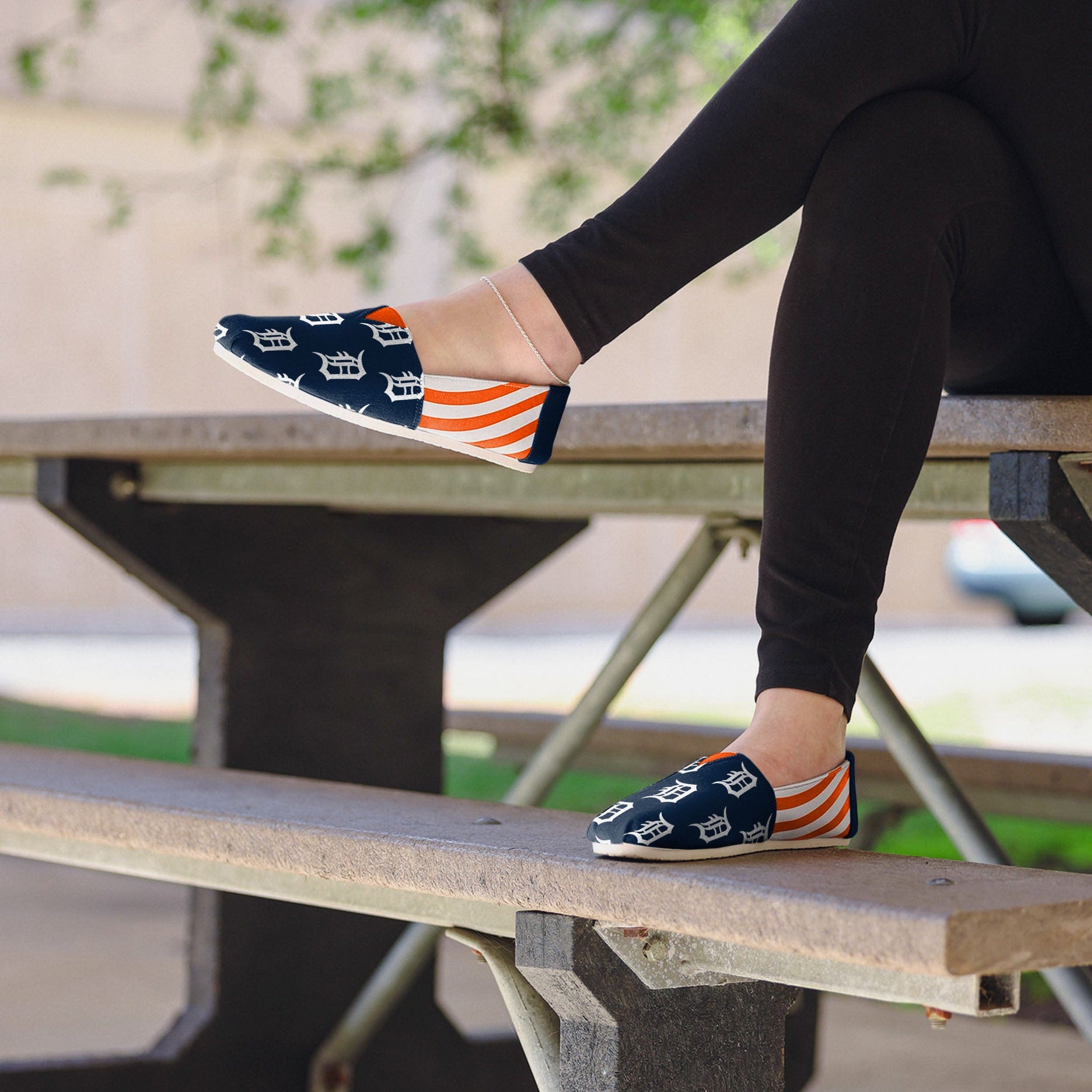 Detroit Tigers Womens Stripe Canvas Shoe FOCO - FOCO.com