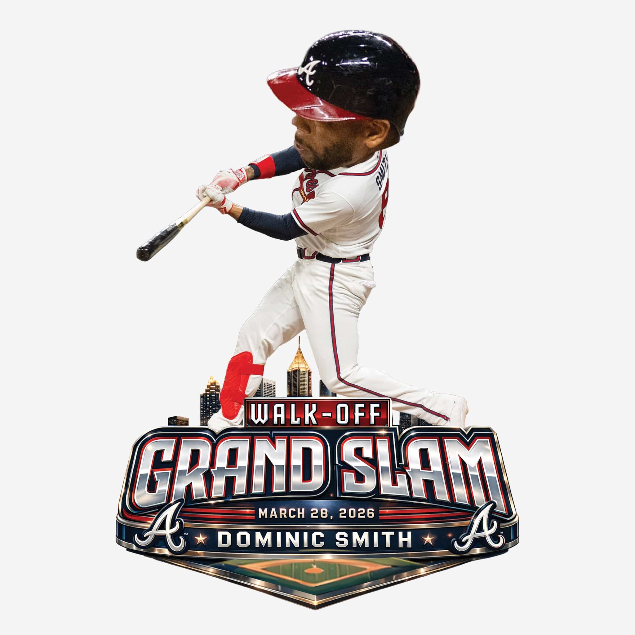 Deliver a walk-off moment for the ages with this Dominic Smith Atlanta Braves Walk-Off Grand Slam Bobblehead. Capturing the thrill of a game-ending blast, this collectible brings the energy of a grand slam celebration straight to your lineup.