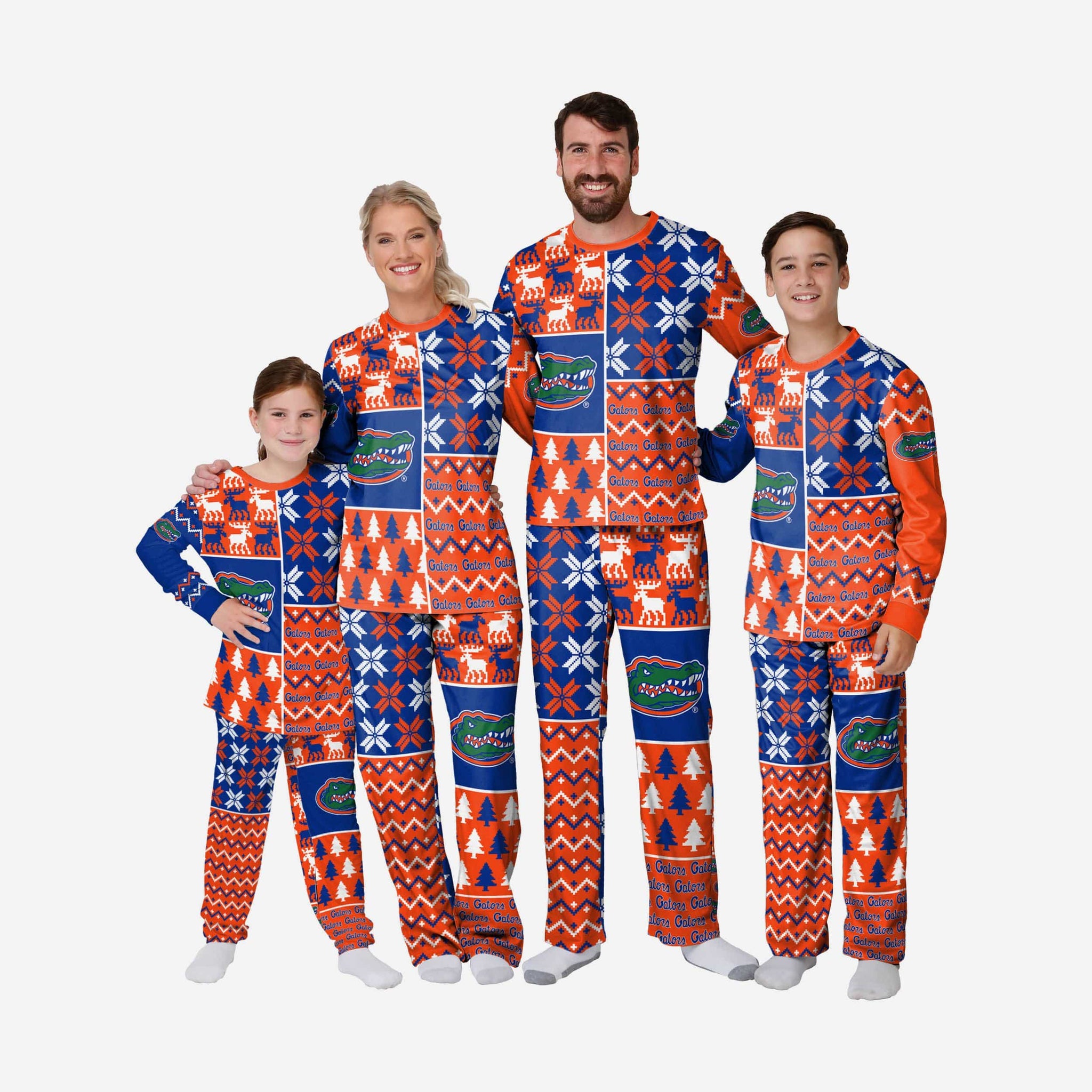 Get some matching family pajamas and dress to impress this holiday season! You won't want to miss these kids' team pajamas! These youth PJ's are comfortable and show off your team spirit in the form of some sweet youth jammies. Introducing the Florida Gators Toddler Busy Block Family Holiday Pajamas! Don't forget to take your holiday photo with the whole family wearing matching Christmas pajamas!