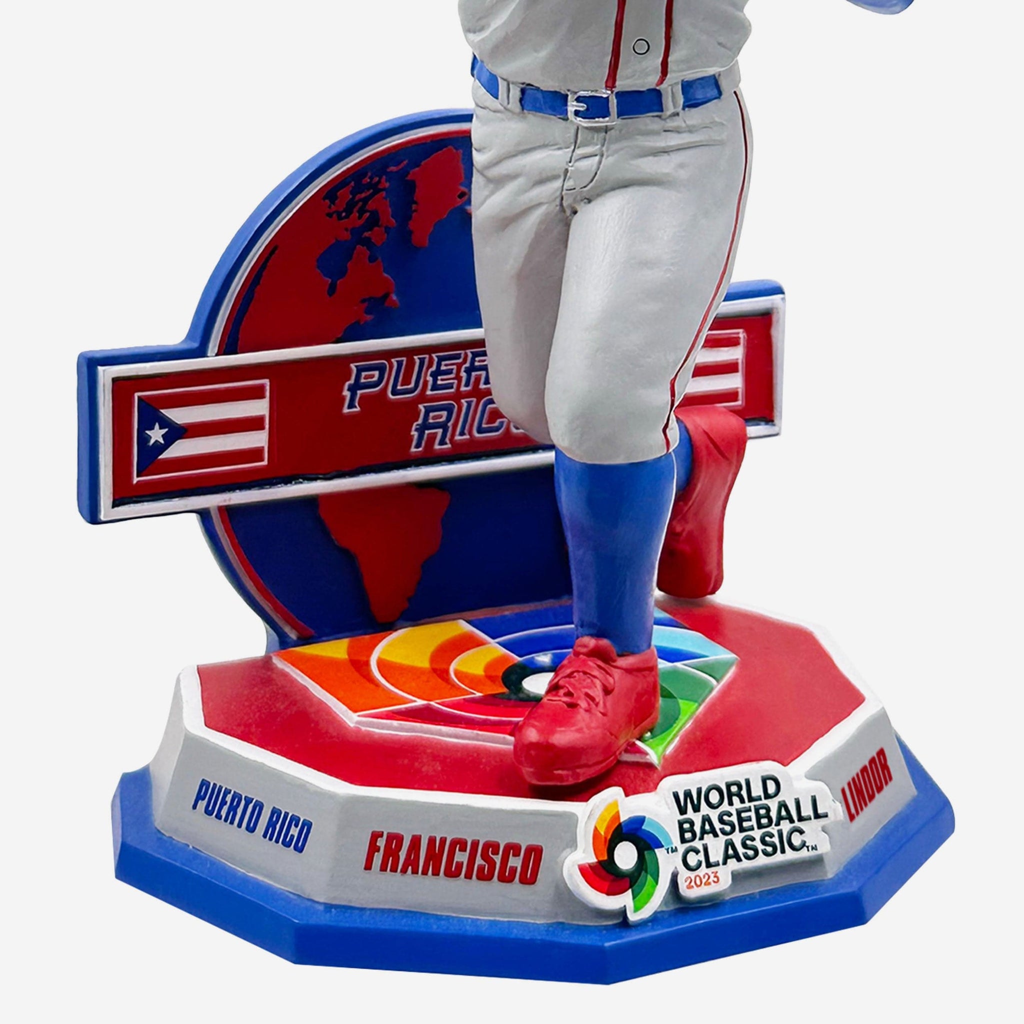This global superstar is hitting the road in style. Bring some home team spirit to your home base with this Francisco Lindor Puerto Rico 2023 World Baseball Classic Away Uniform Bobblehead.