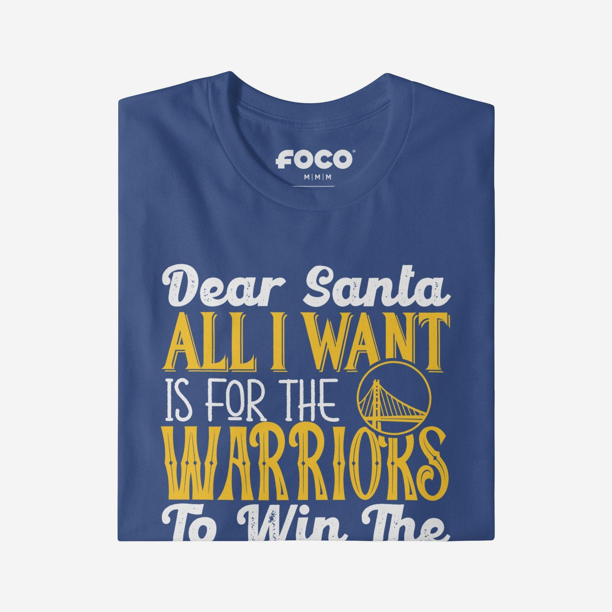 • Festive, team-colored design: This traditional t-shirt shows off the official Golden State Warriors colors in an all-over design with a festive message to Santa, so you can combine your team spirit with holiday spirit.