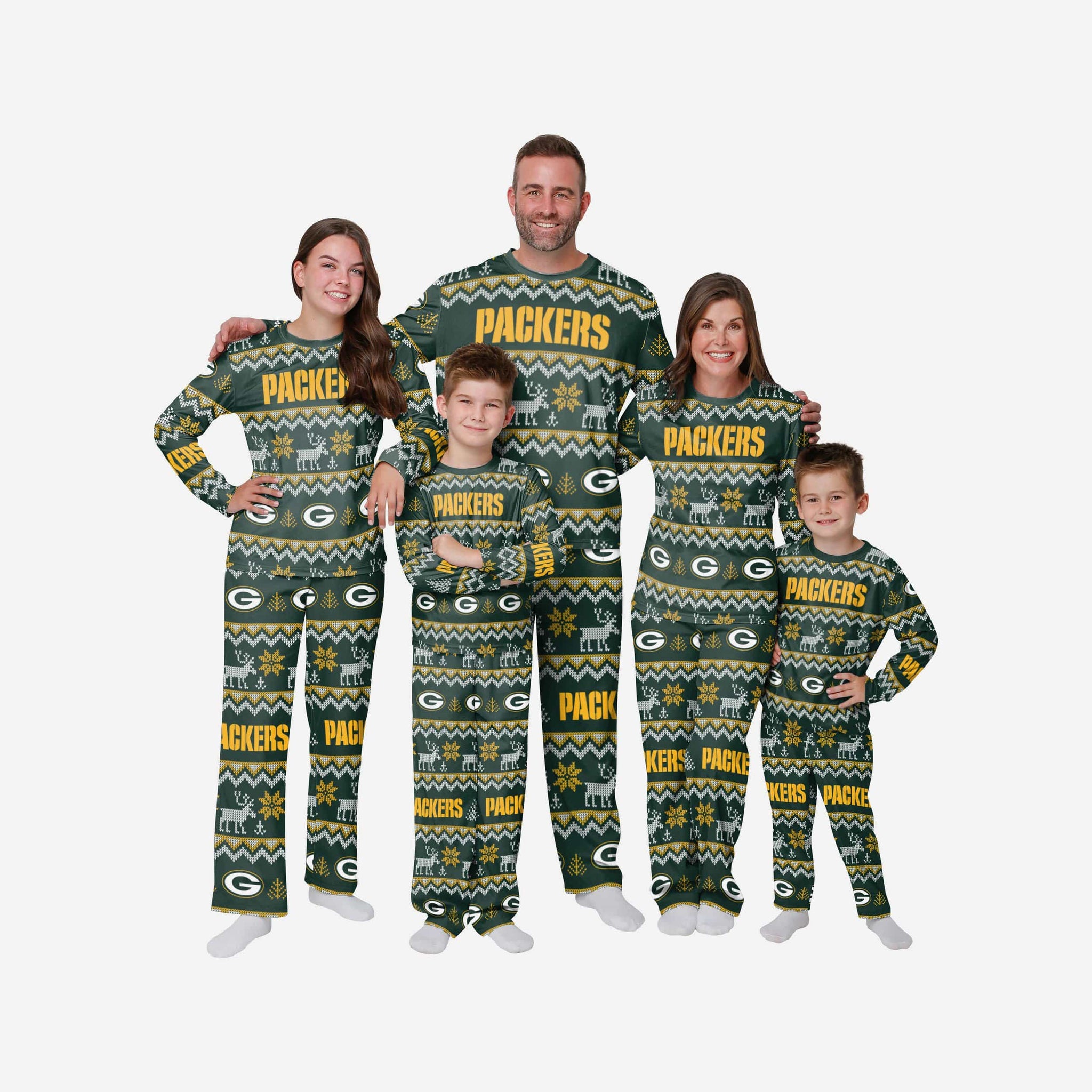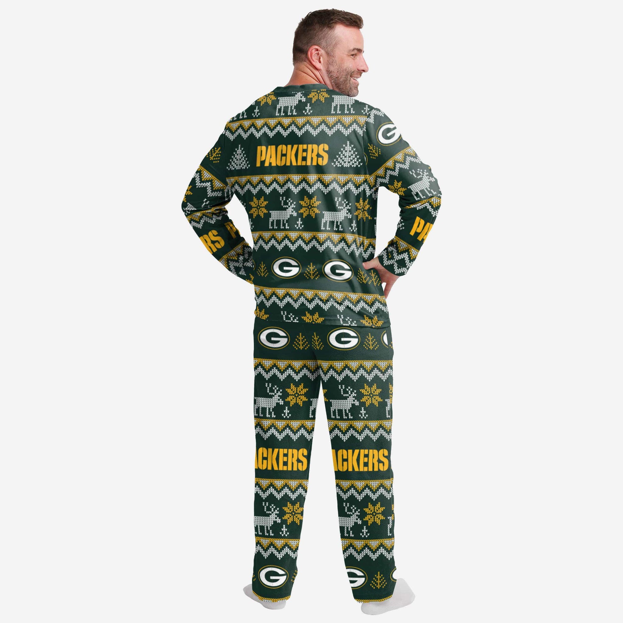Green Bay Packers Mens Ugly Pattern Family Holiday Pajamas FOCO S - FOCO.com