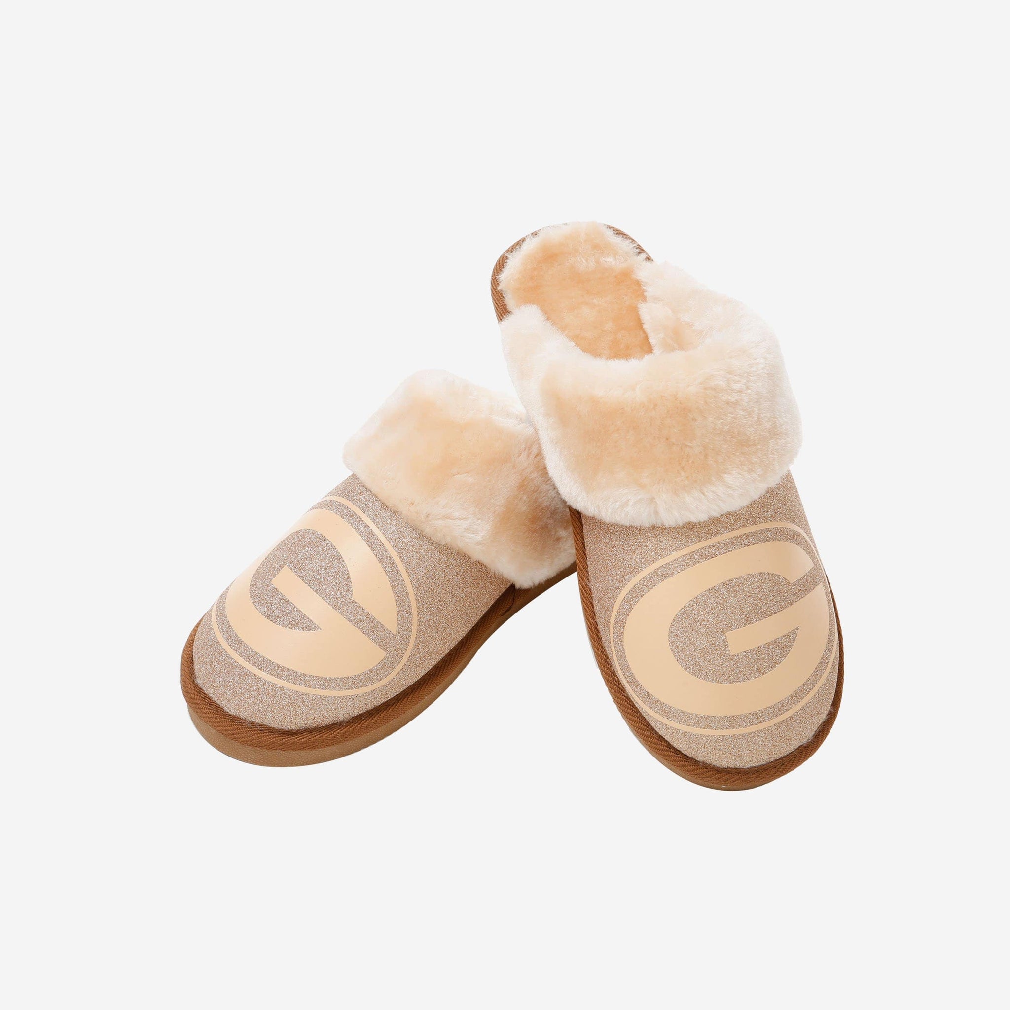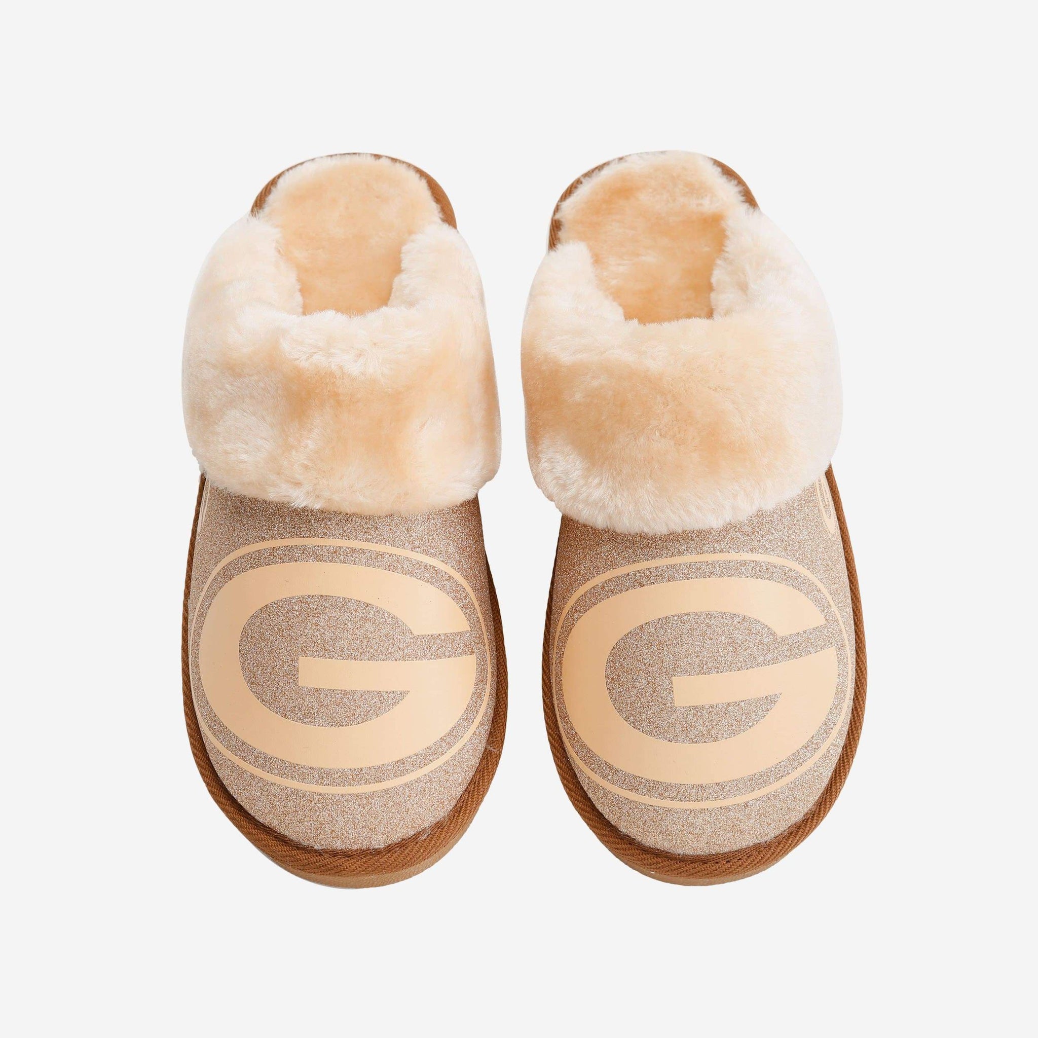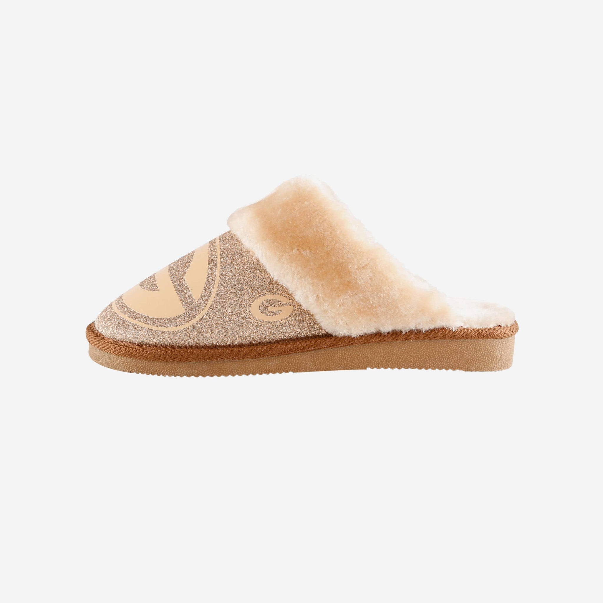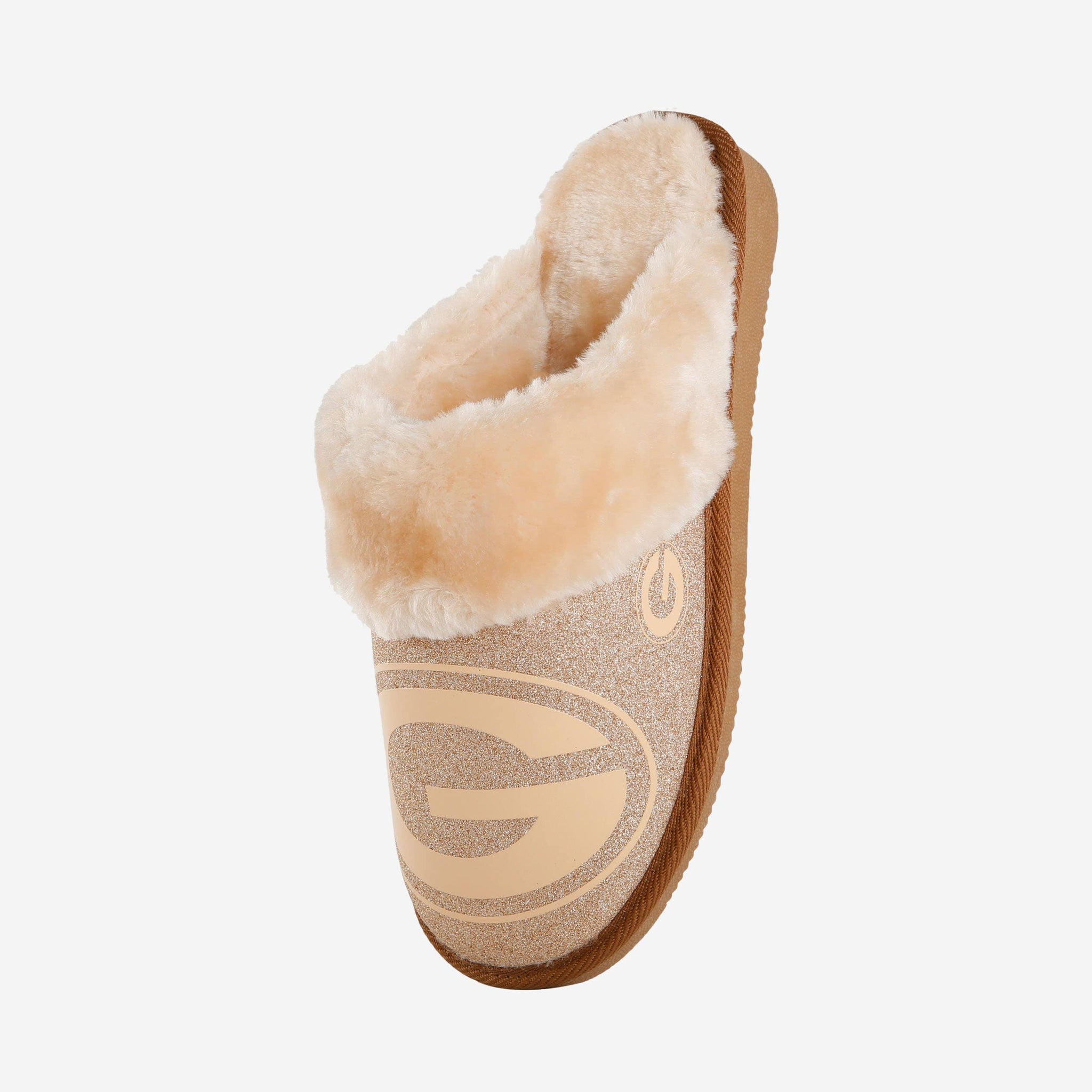 Green Bay Packers Womens Glitter Open Back Fur Moccasin Slipper