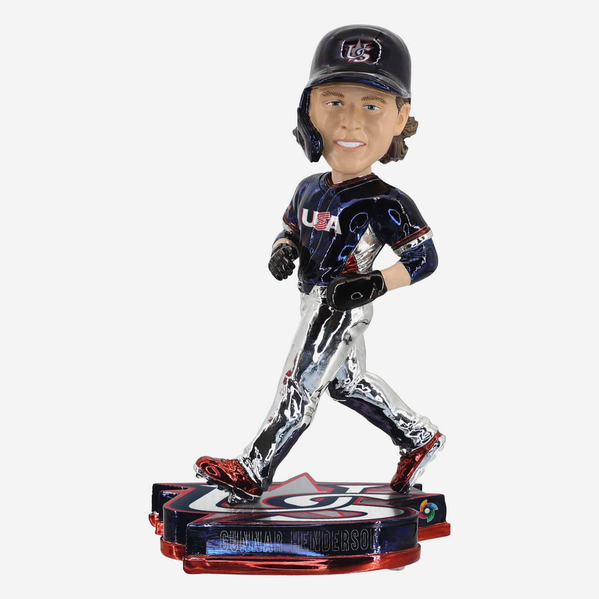 Turn up the shine and take your collection global! The Gunnar Henderson USA 2026 World Baseball Classic Electroplate Edition Bobblehead brings next-level brilliance to baseball’s biggest international stage, featuring a bold electroplated finish that transforms this tournament moment into a true showpiece. When the lights hit, this one steals the spotlight.