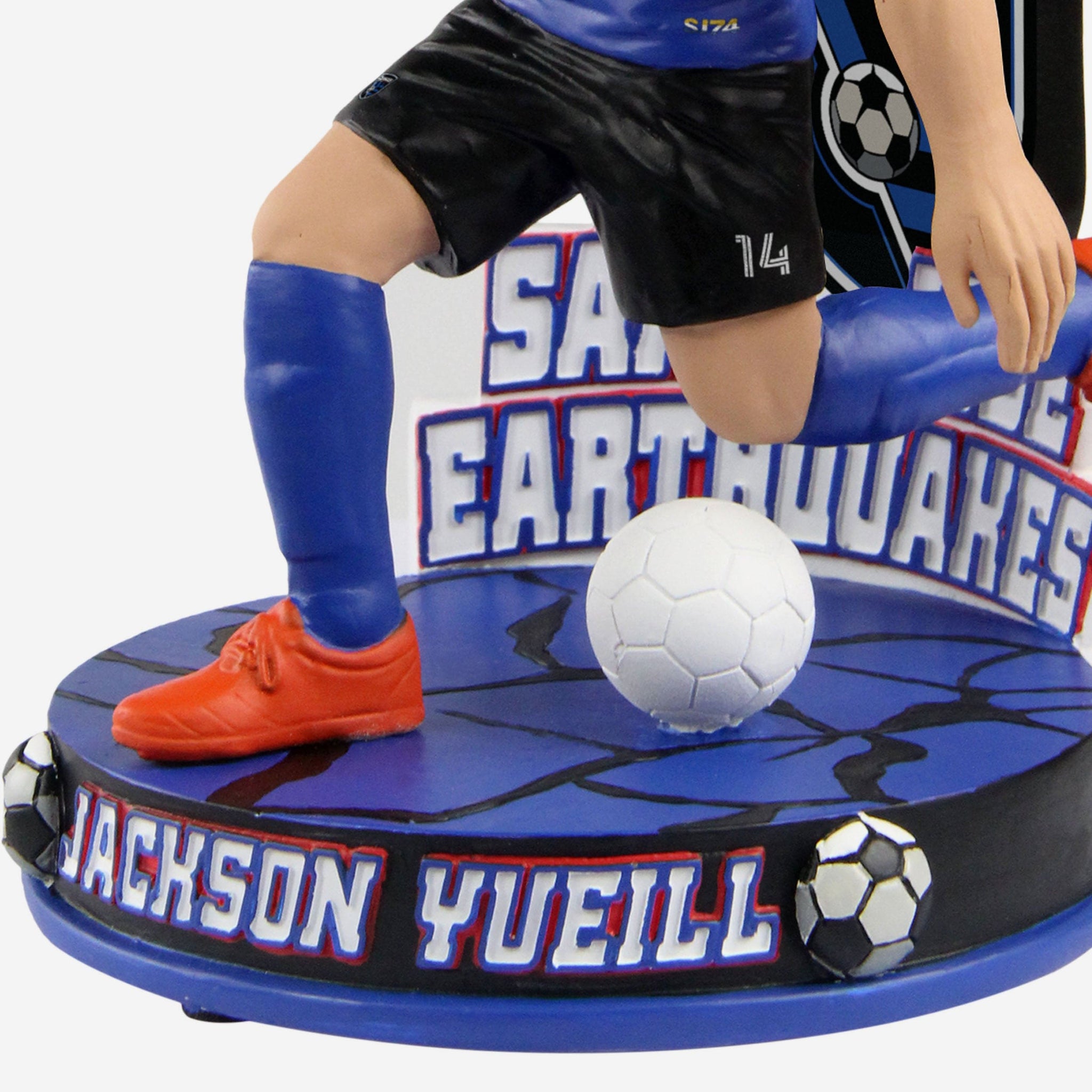 - Soccer ball accents on front of base, and Jackson looks ready to put one in the net