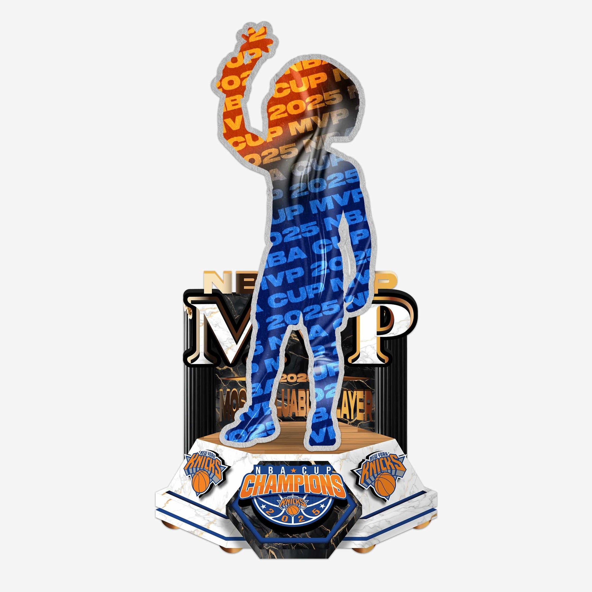 • Portrays Jalen Brunson posing in his black gameday uniform and holding the NBA Cup MVP trophy, because he's GOTTA show off the hardware