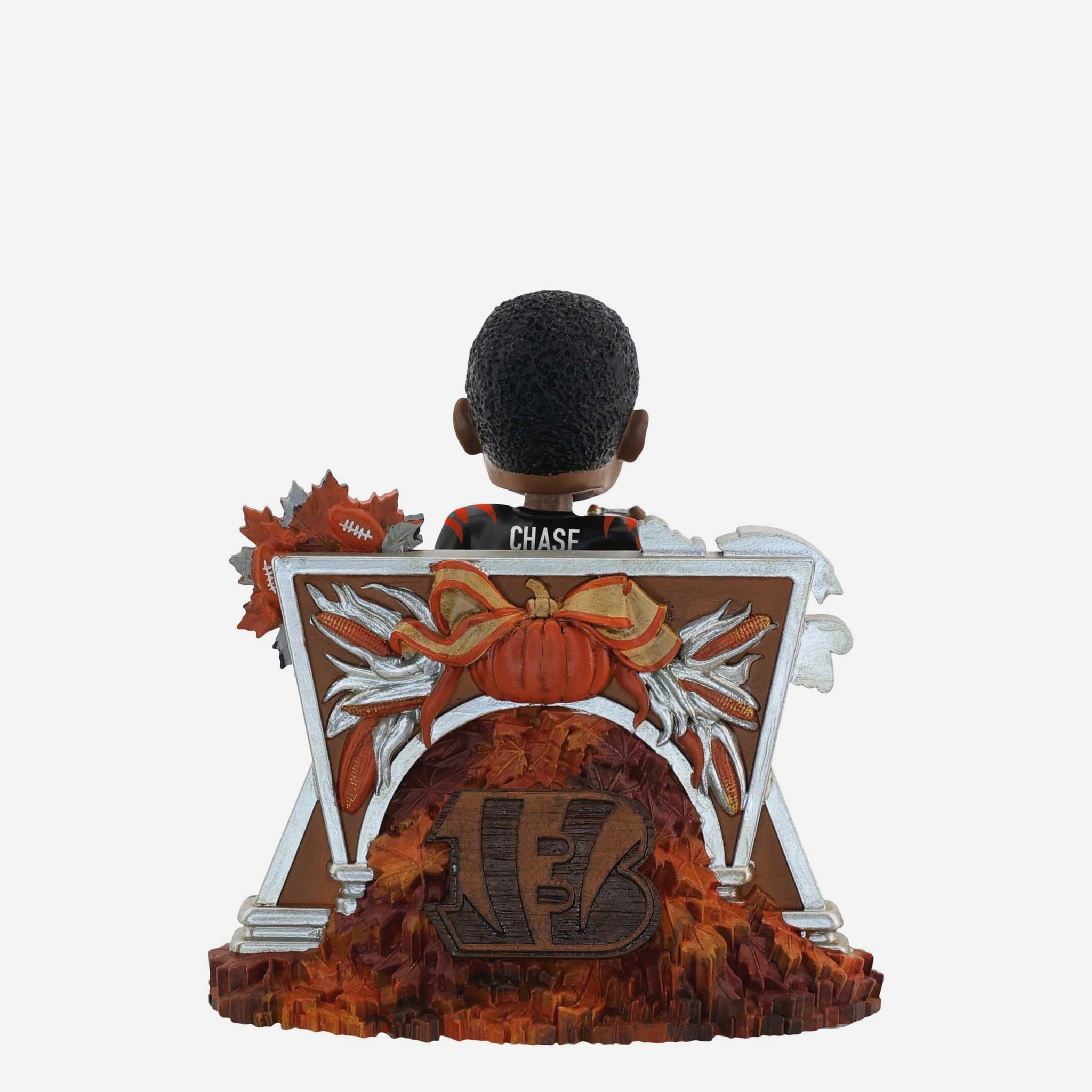 Celebrate Thanksgiving the football way with this JaMarr Chase Cincinnati Bengals Thanksgiving Day Bobblehead! Packed with festive flair and gameday energy, this collectible brings together fall vibes for the perfect holiday centerpiece.