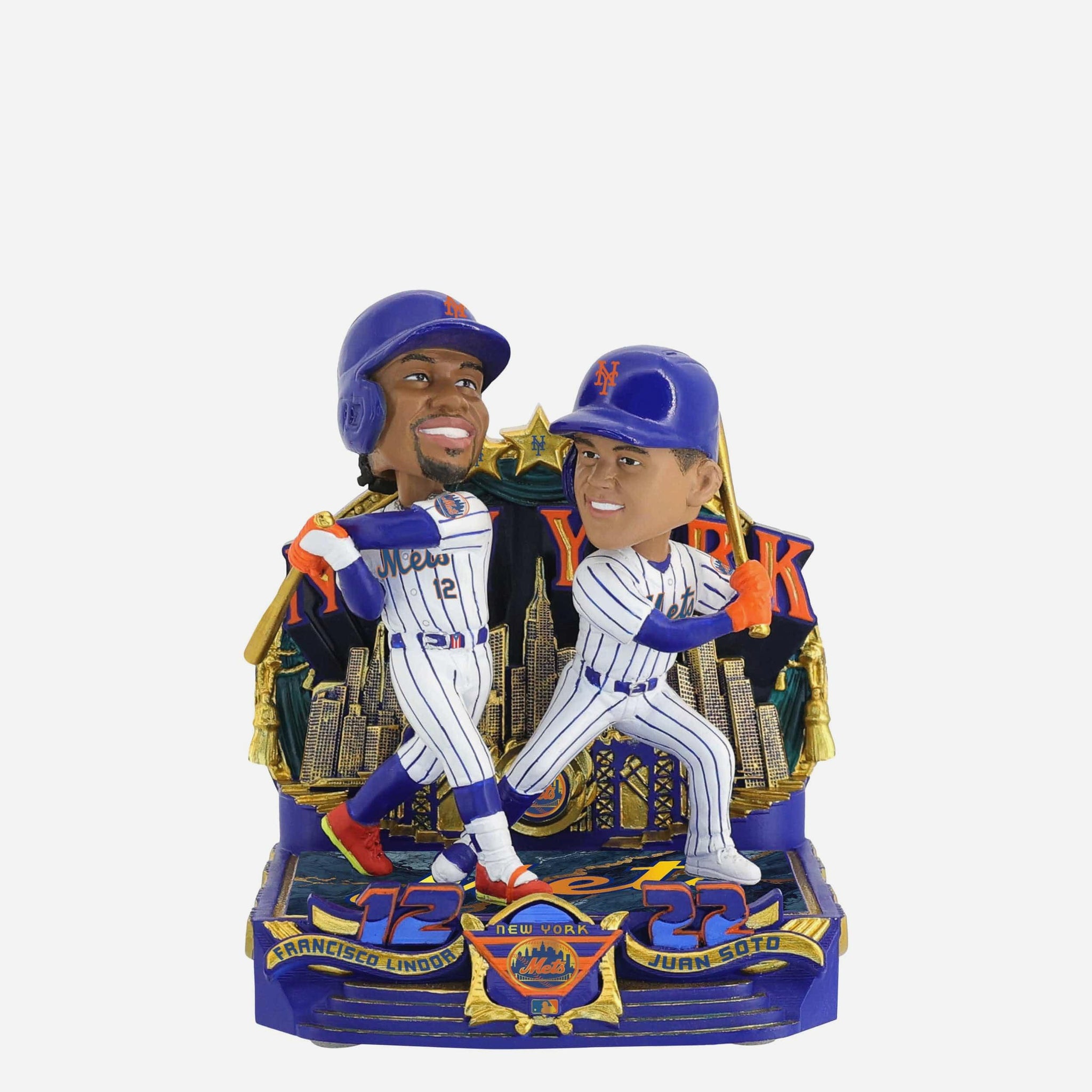 Two superstar Mets. One legendary bobble. Bring double the Big Apple energy to your collection with this Juan Soto & Francisco Lindor New York Mets Bobblemate Mini Dual Bobblehead.