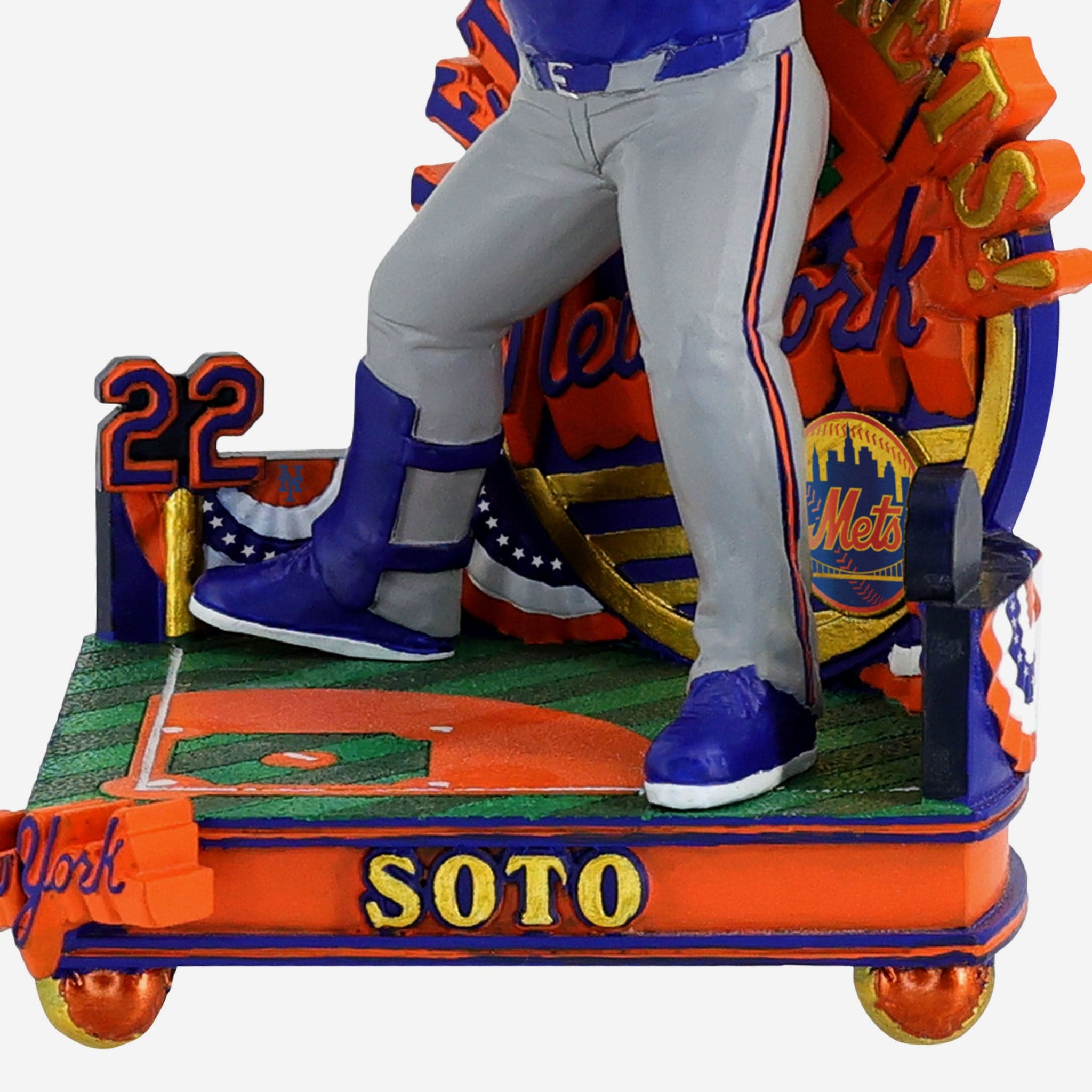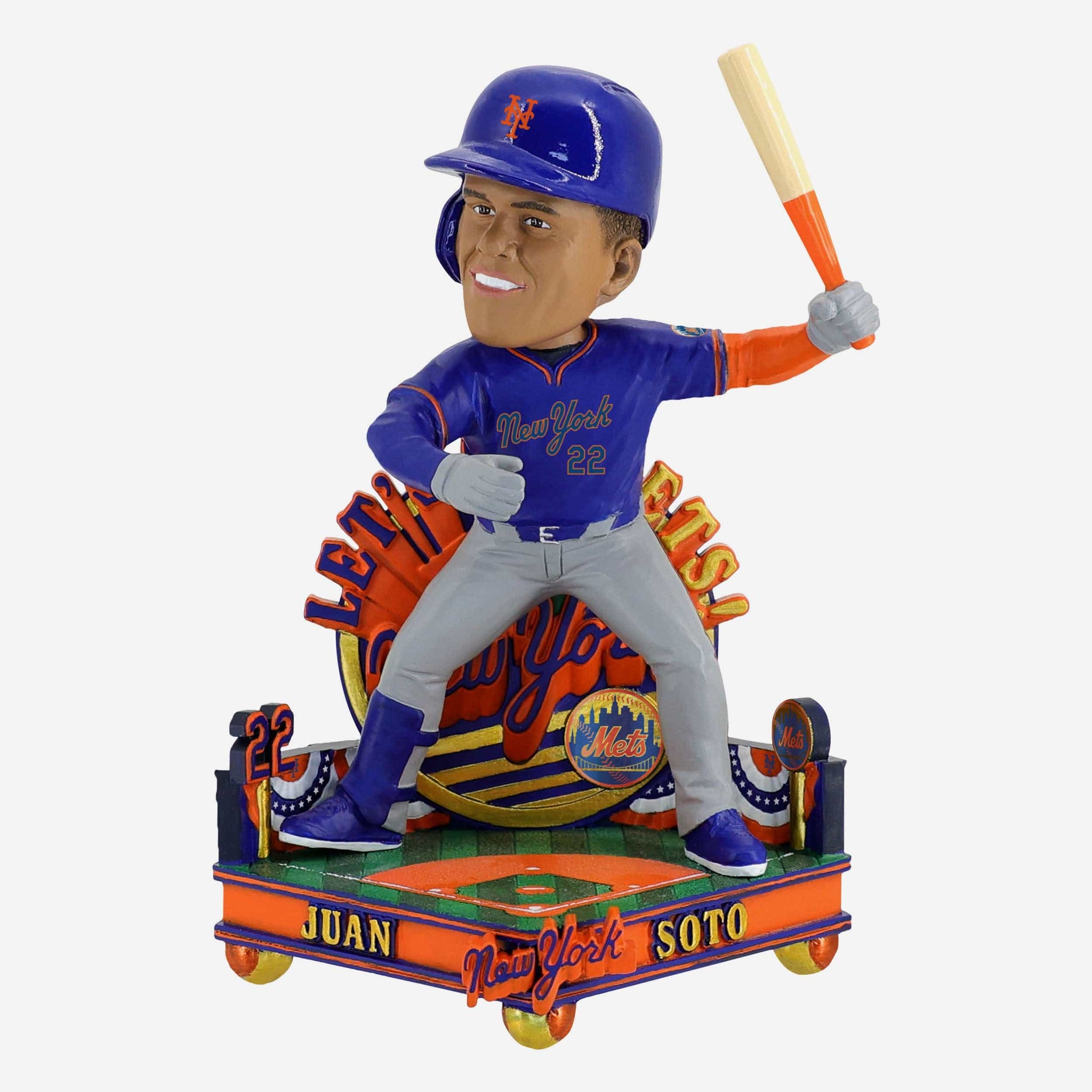 Soto is back in blue! Get ready to level up the look in your fancave with the Juan Soto New York Mets Blue Alternate Uniform Bobblehead.