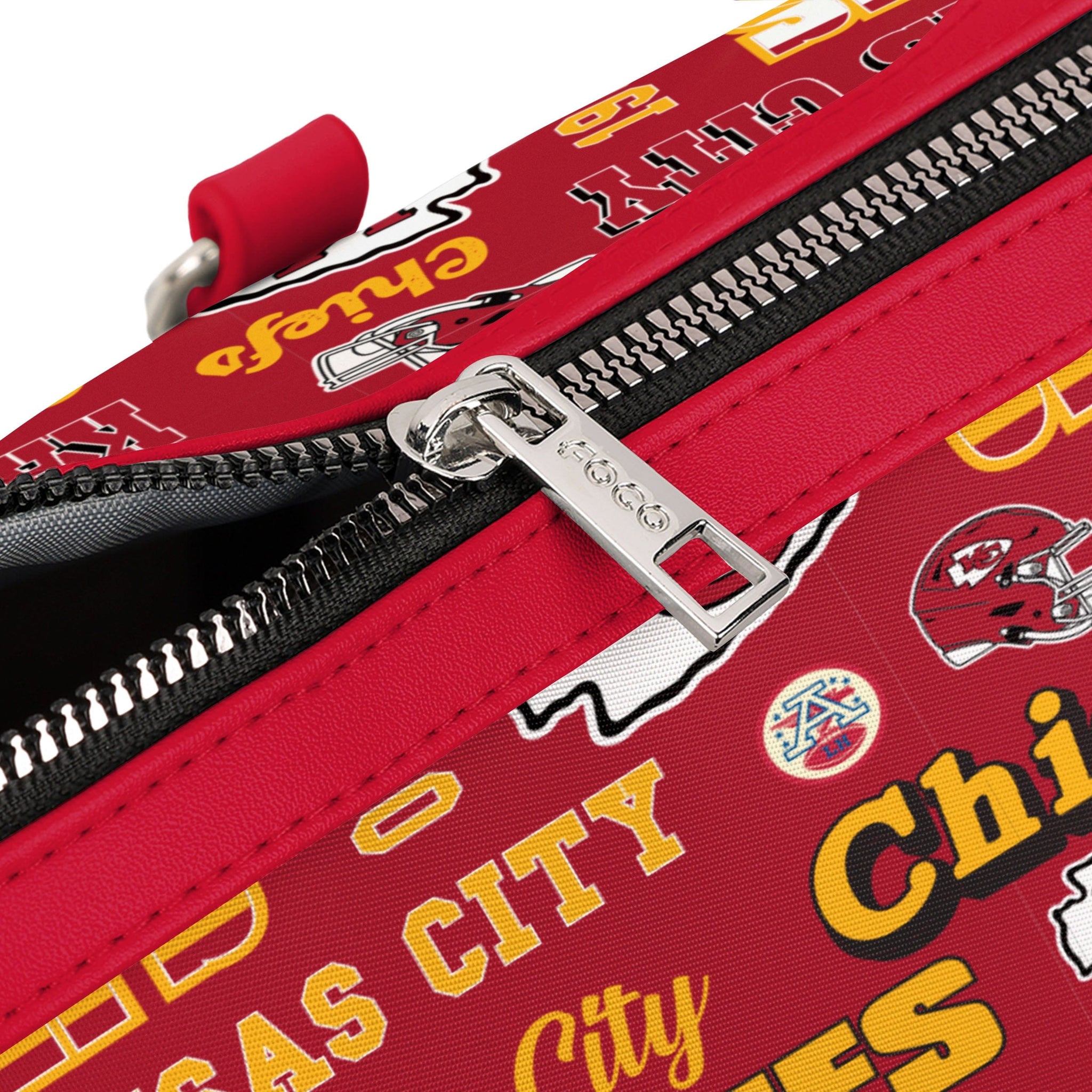 Pack up and play on! Fashion meets fandom in the Kansas City Chiefs Repeat Retro Print Nylon Medium Barrel Bag.