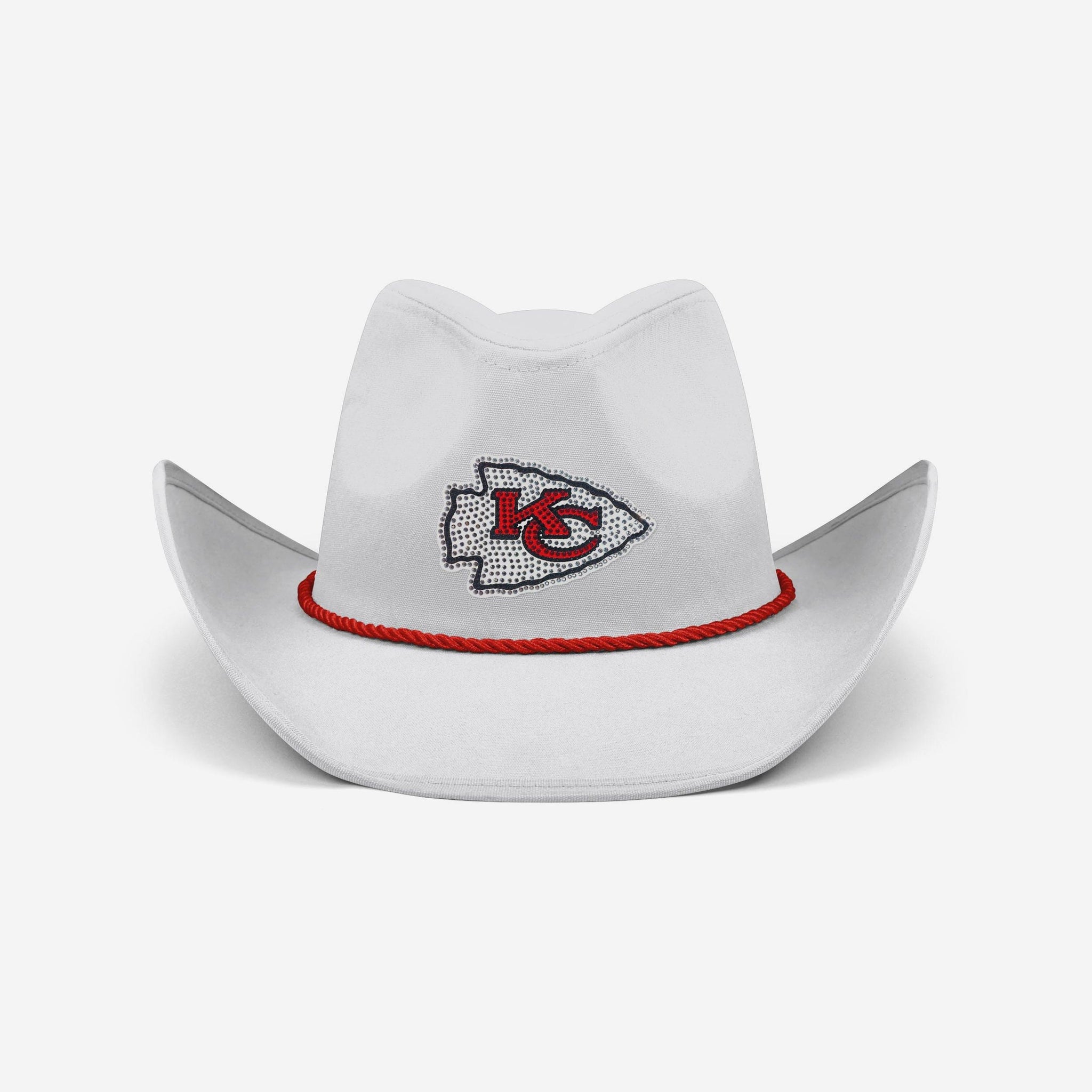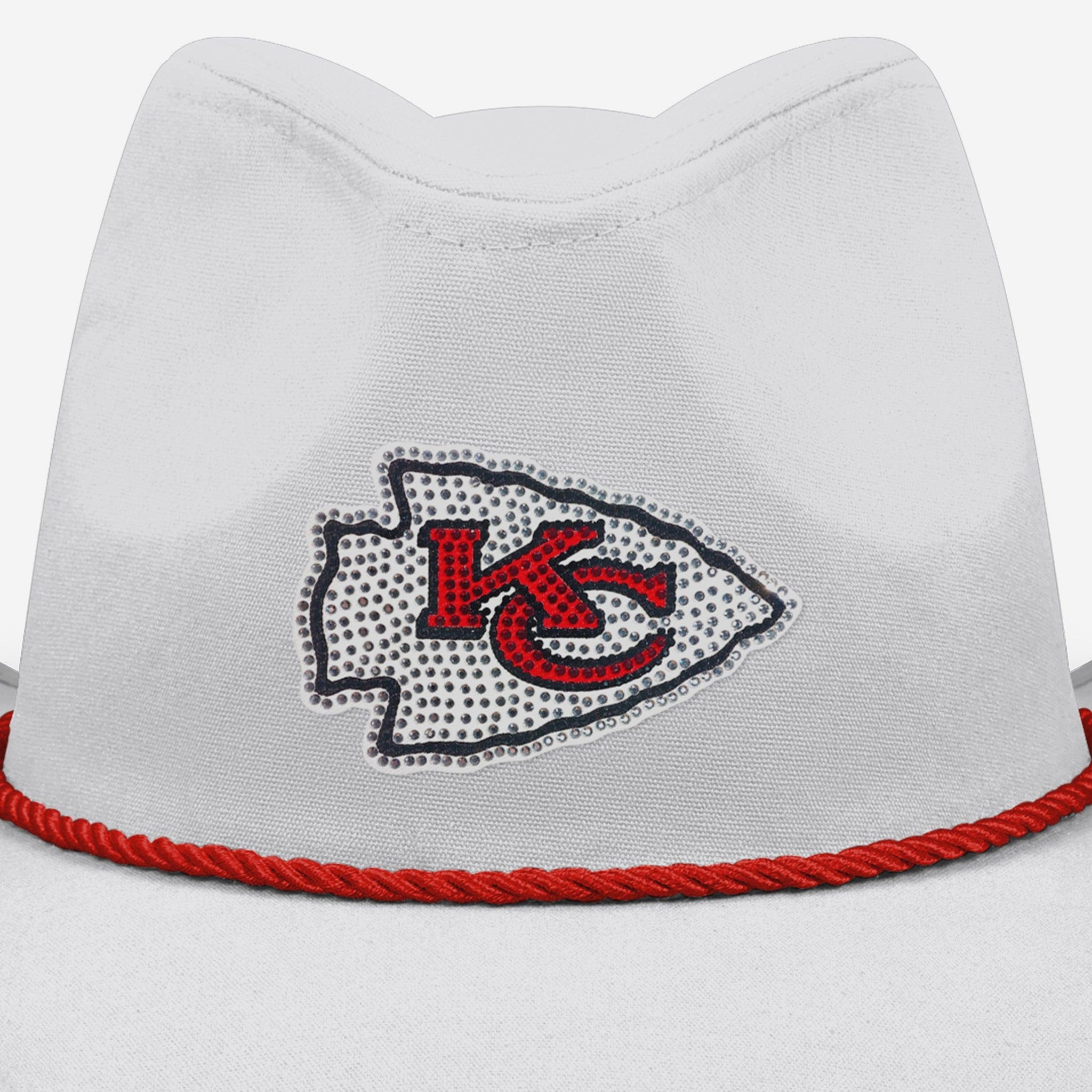 Howdy partner! Top off your fan fit and sparkle with standout style in this Kansas City Chiefs White Rhinestone Cowboy Hat.
