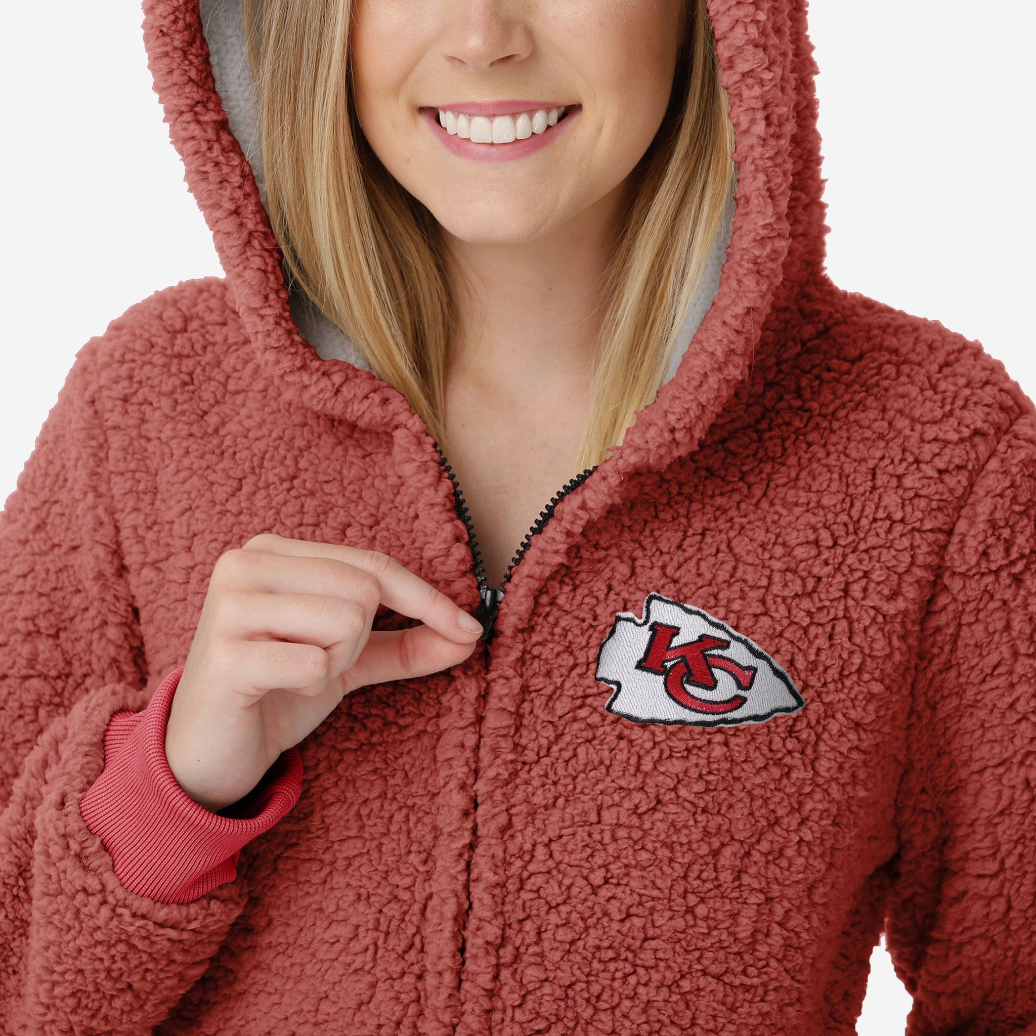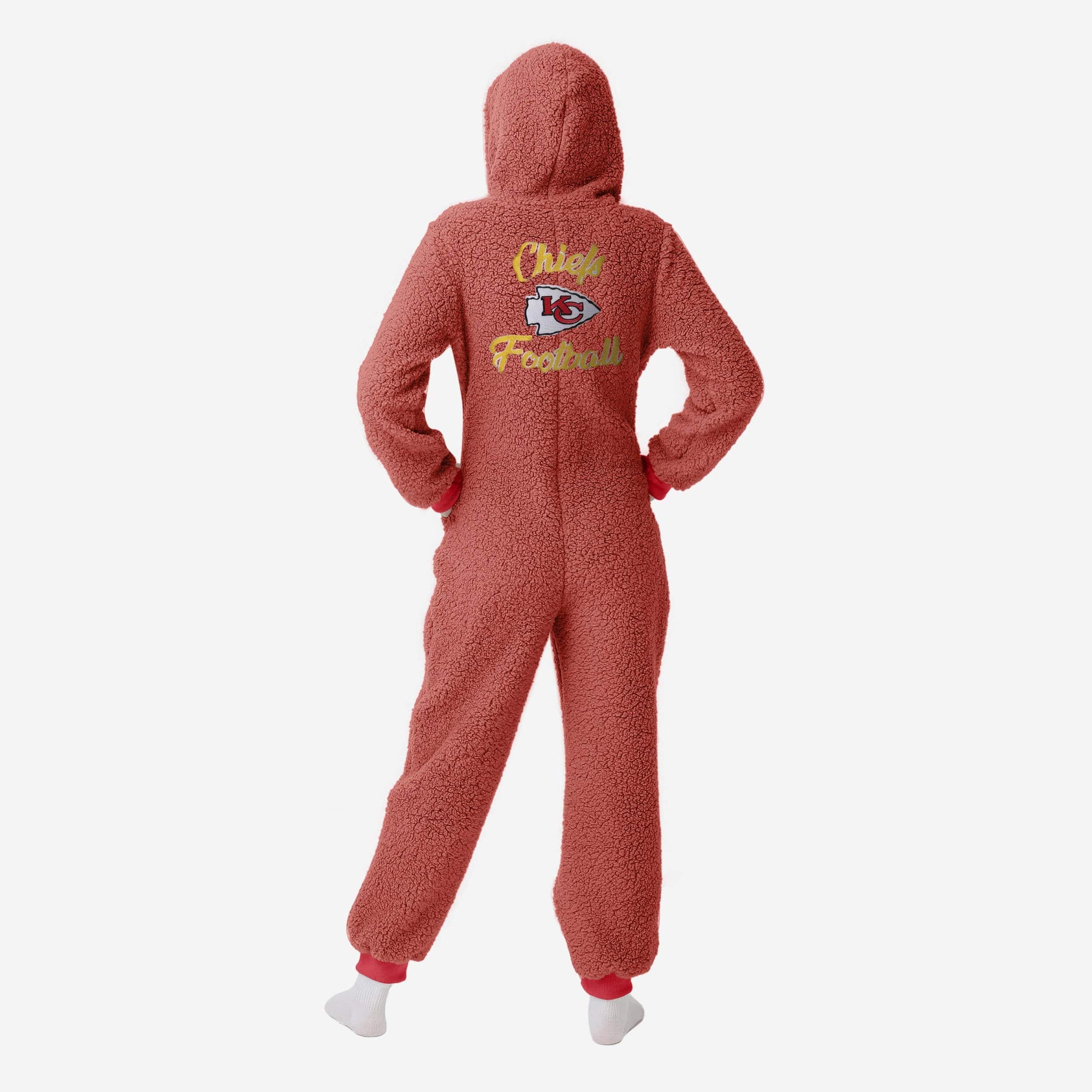 Get some matching family pajamas and dress to impress this holiday season! You won't want to miss these onesie team pajamas! These women's PJ's are comfortable and show off your team spirit in the form of some sweet one piece jammies. Introducing the Kansas City Chiefs Women's Sherpa One Piece Pajamas! Don't forget to take your holiday photo with the whole family wearing matching Christmas pajamas!