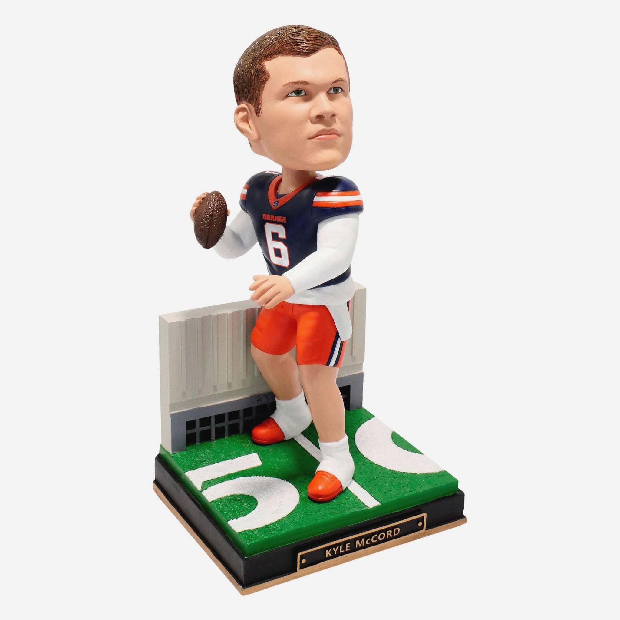 The Cuse is loose! Add some Orange pride to your fancave with the Kyle McCord Syracuse Orange Gate Series Bobblehead.