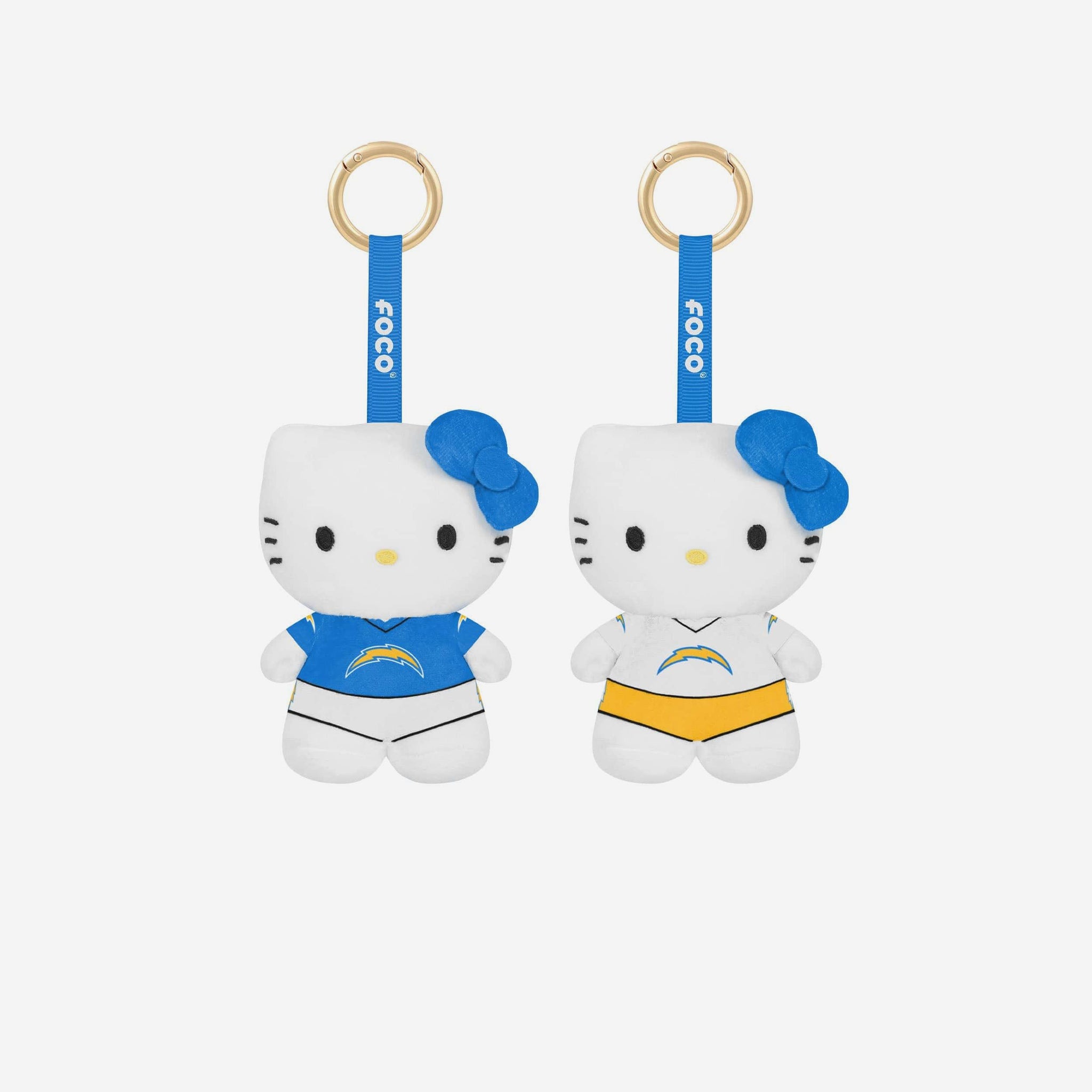 Double the cuteness, double the team pride! The Los Angeles Chargers 2 Pack Mini Plush Hello Kitty® Bag Charm Keychain features two adorable designs, perfect for showing off your fandom anywhere you go.