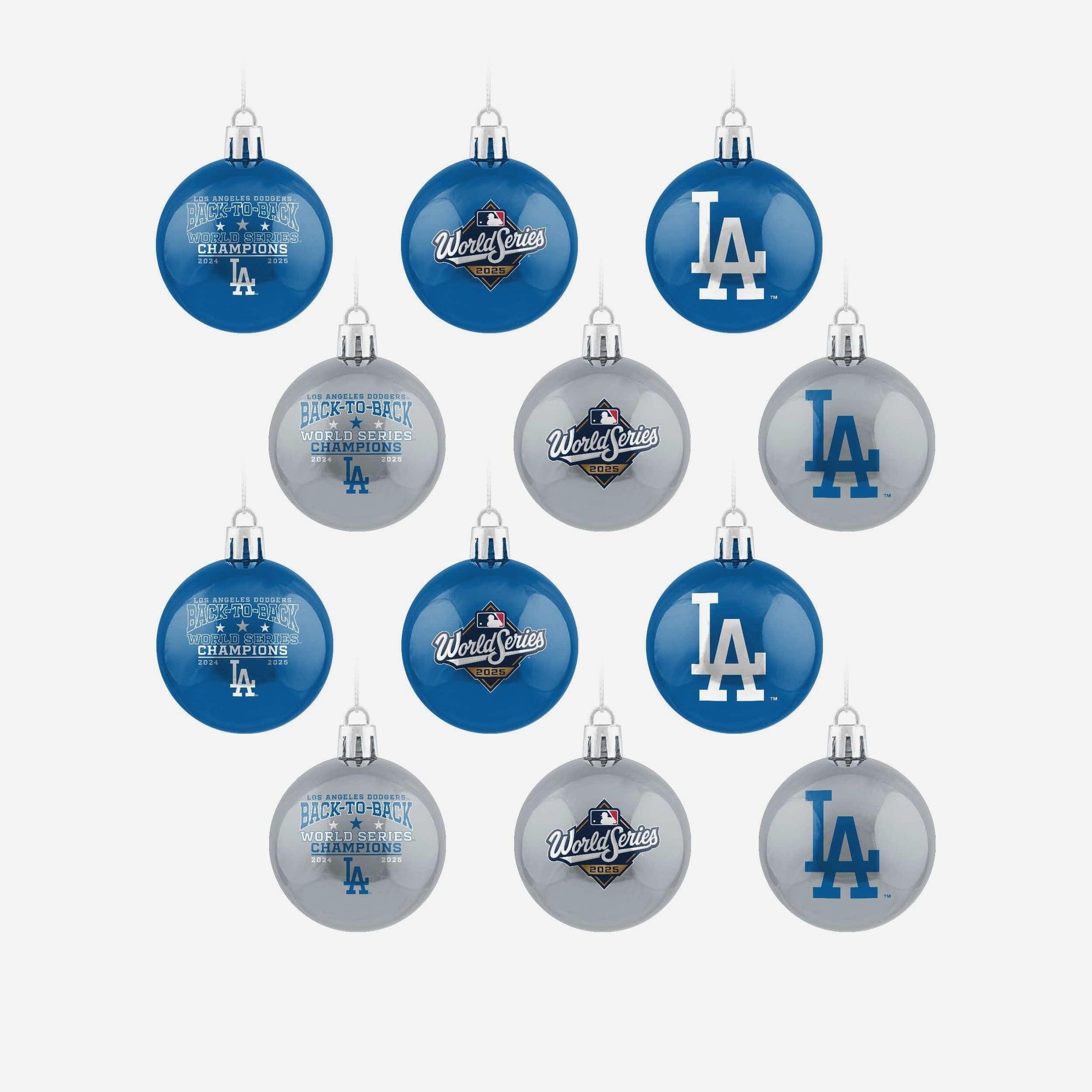 Los Angeles Dodgers 2025 Back To Back World Series Champions 12 Pack Plastic Ball Ornament Set