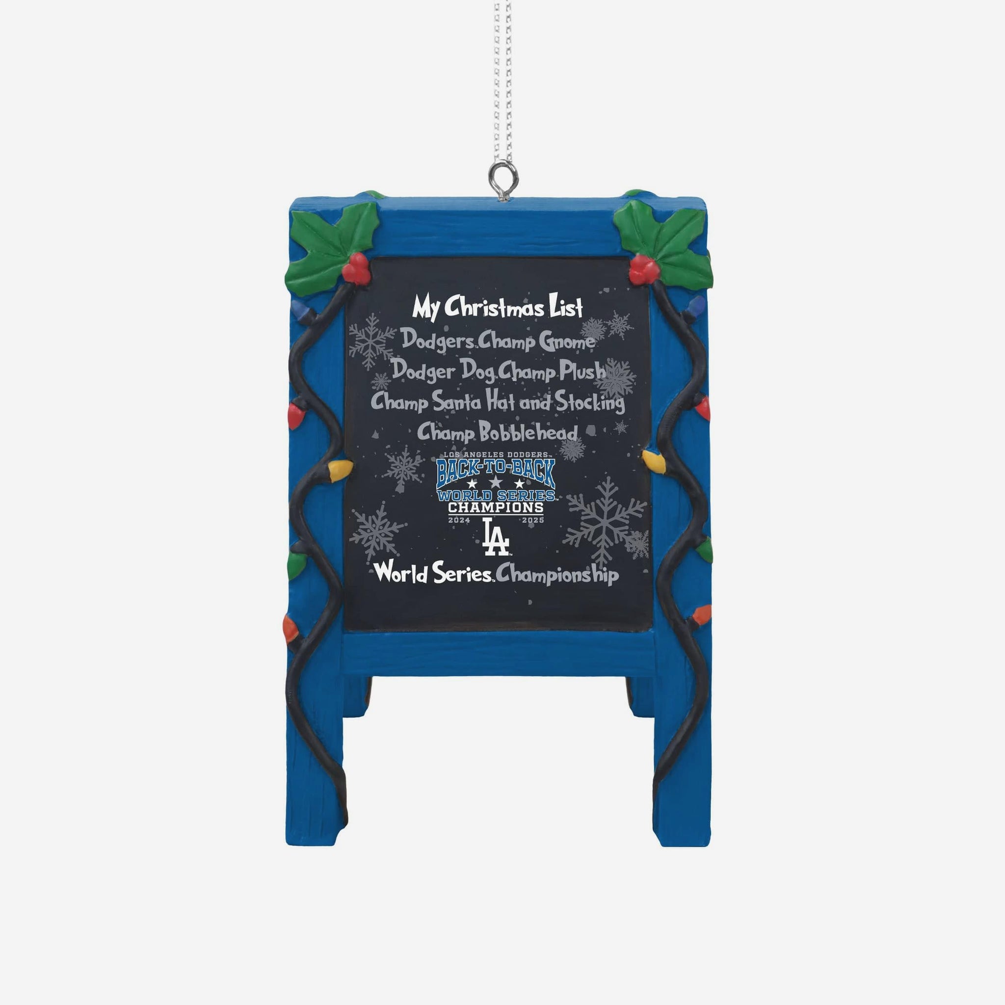 Los Angeles Dodgers 2025 Back To Back World Series Champions Chalkboard Easel Ornament