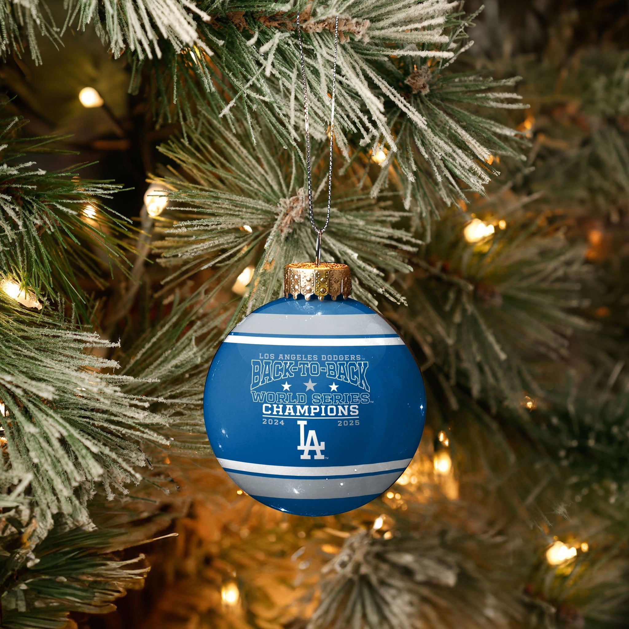 After an incredible championship run, keep the excitement going with a championship Christmas tree in your home. For reference, a "championship Christmas tree" is any tree that's got this Los Angeles Dodgers 2025 Back To Back World Series Champions Glass Ball Ornament on it.