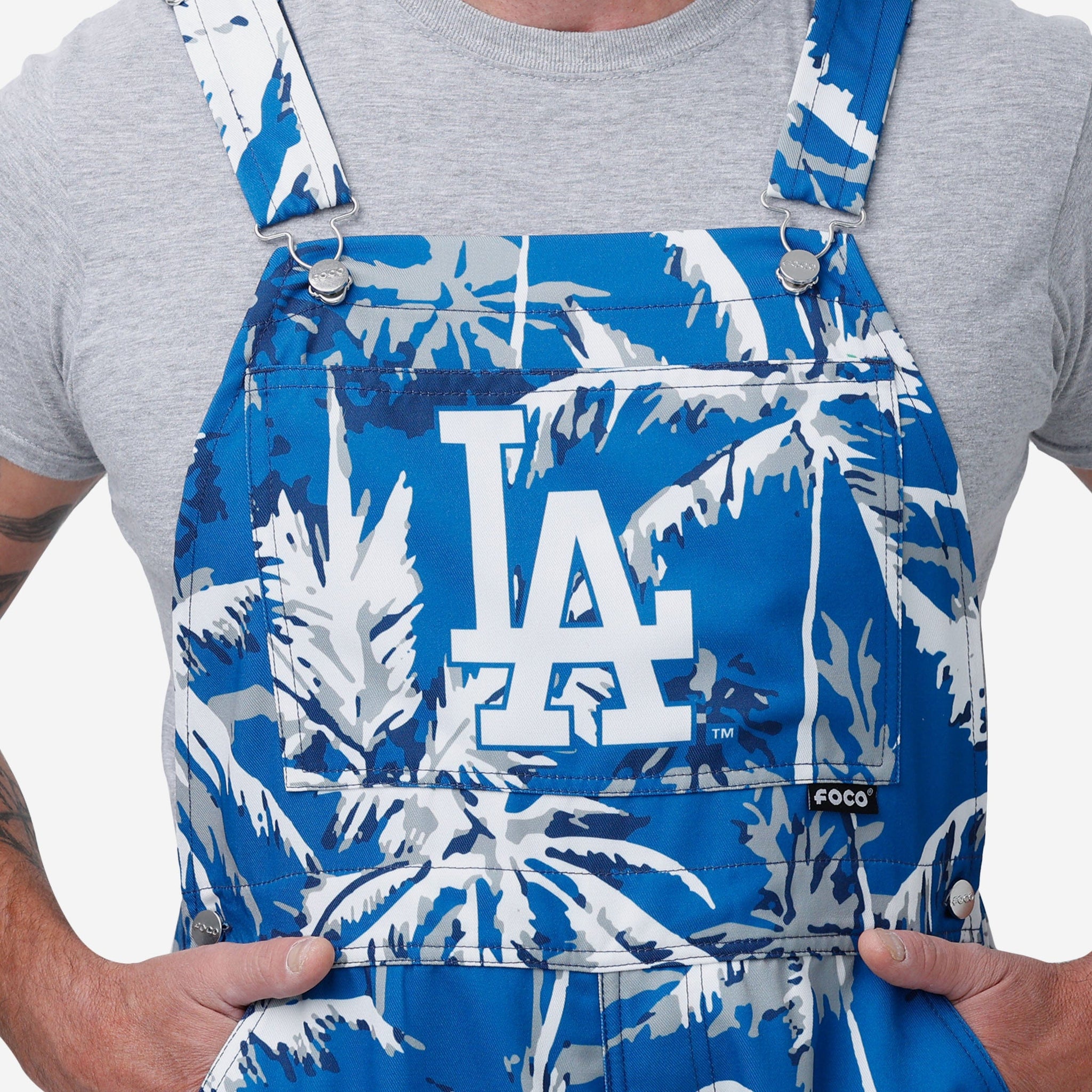 Los Angeles Dodgers Mens Palm Tree Thematic Bib Overalls FOCO S - FOCO.com