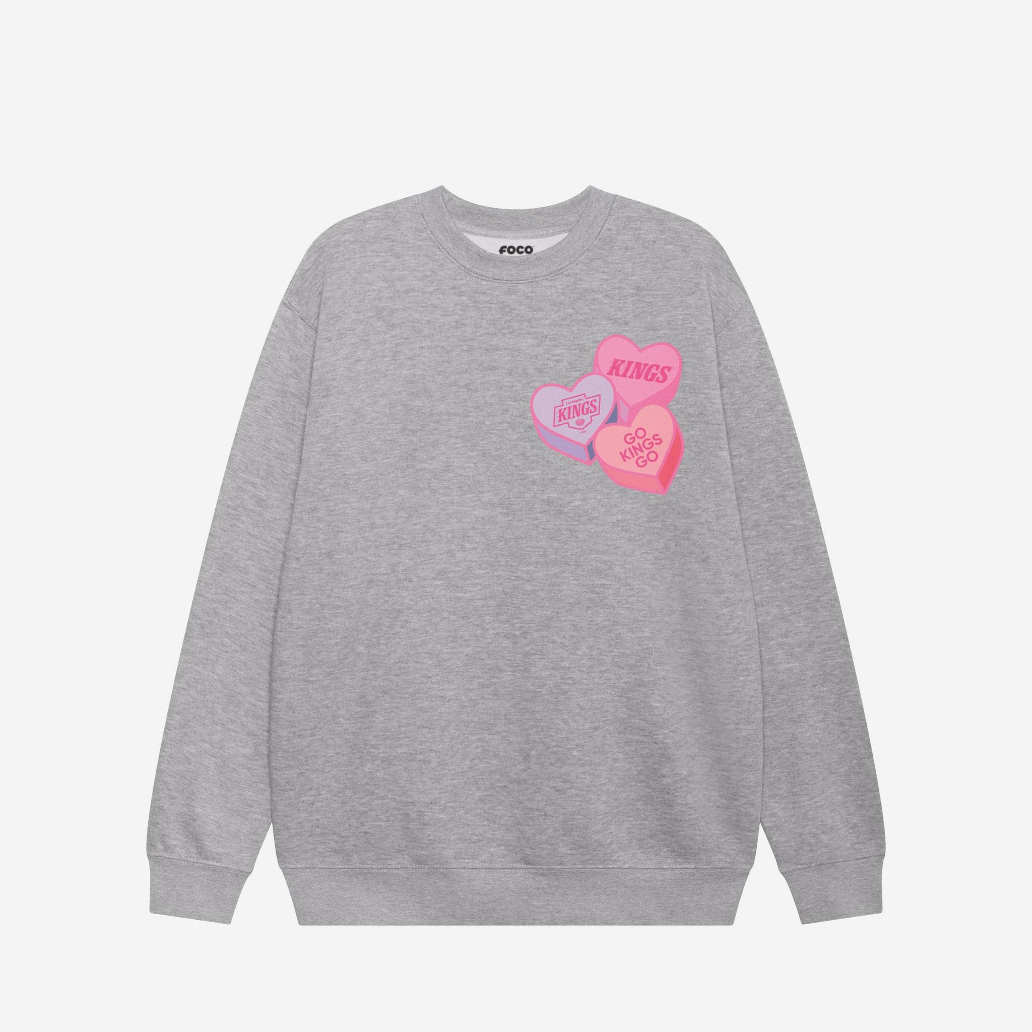 Los Angeles Kings Candy Heart Crew Neck Sweatshirt FOCO Athletic Heather S - FOCO.com