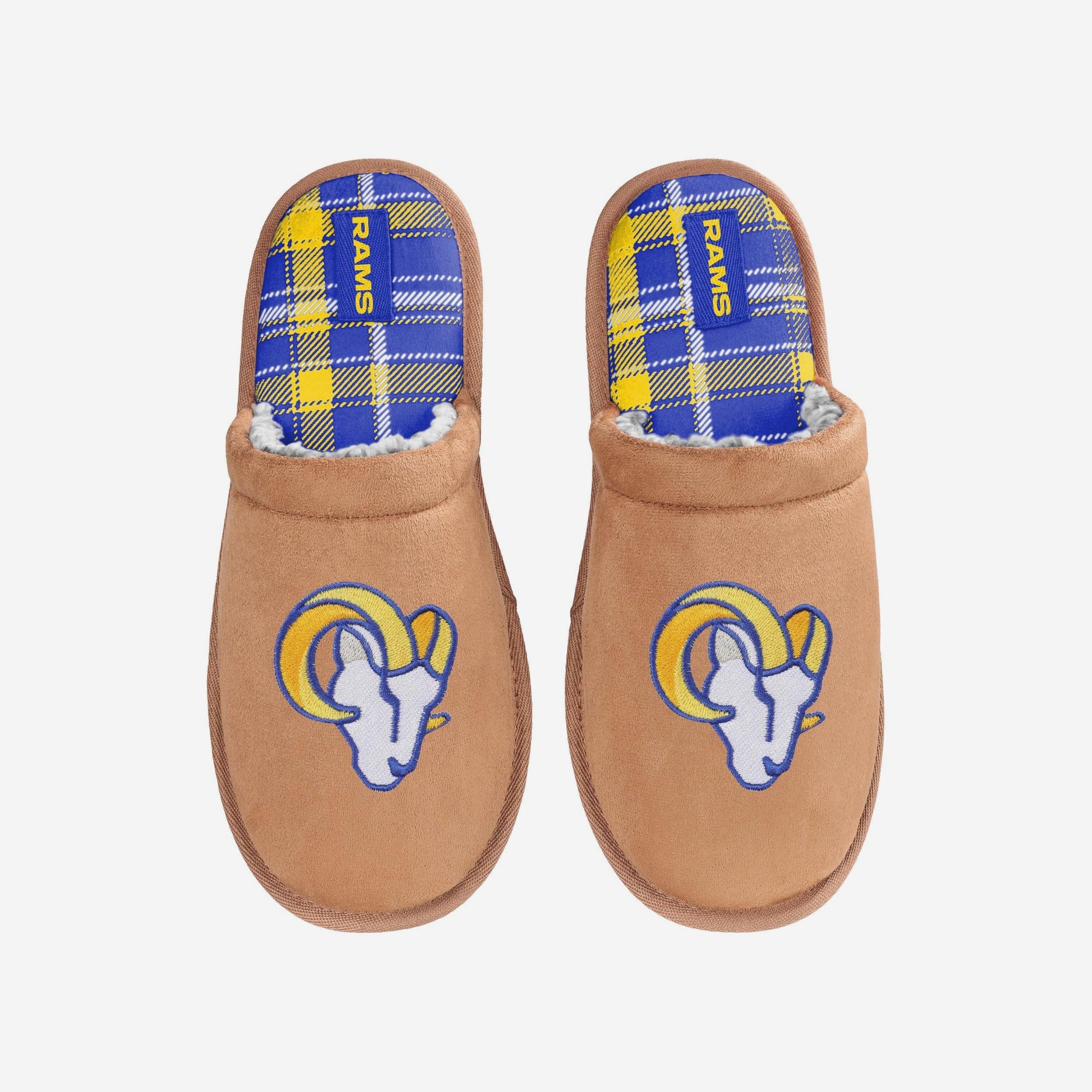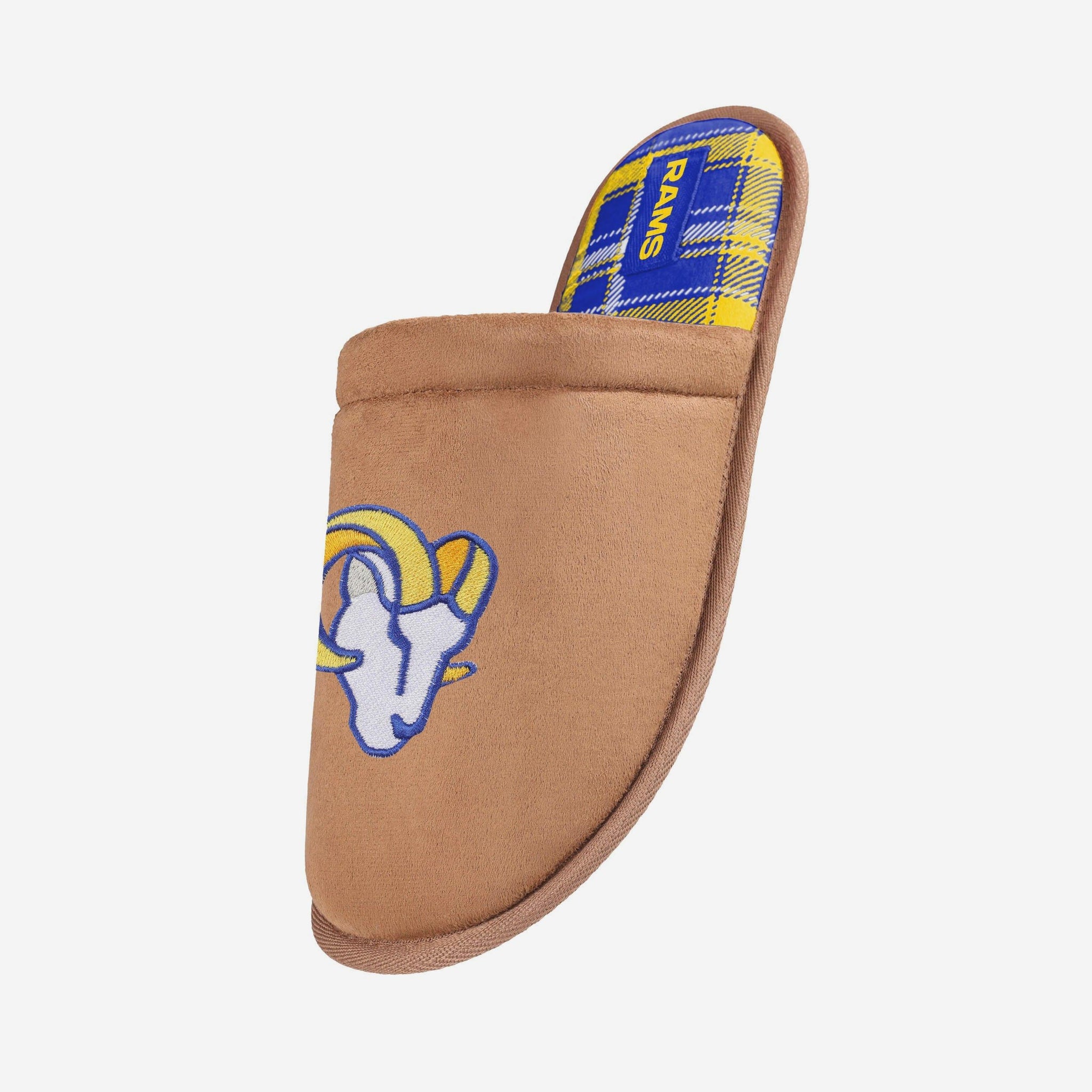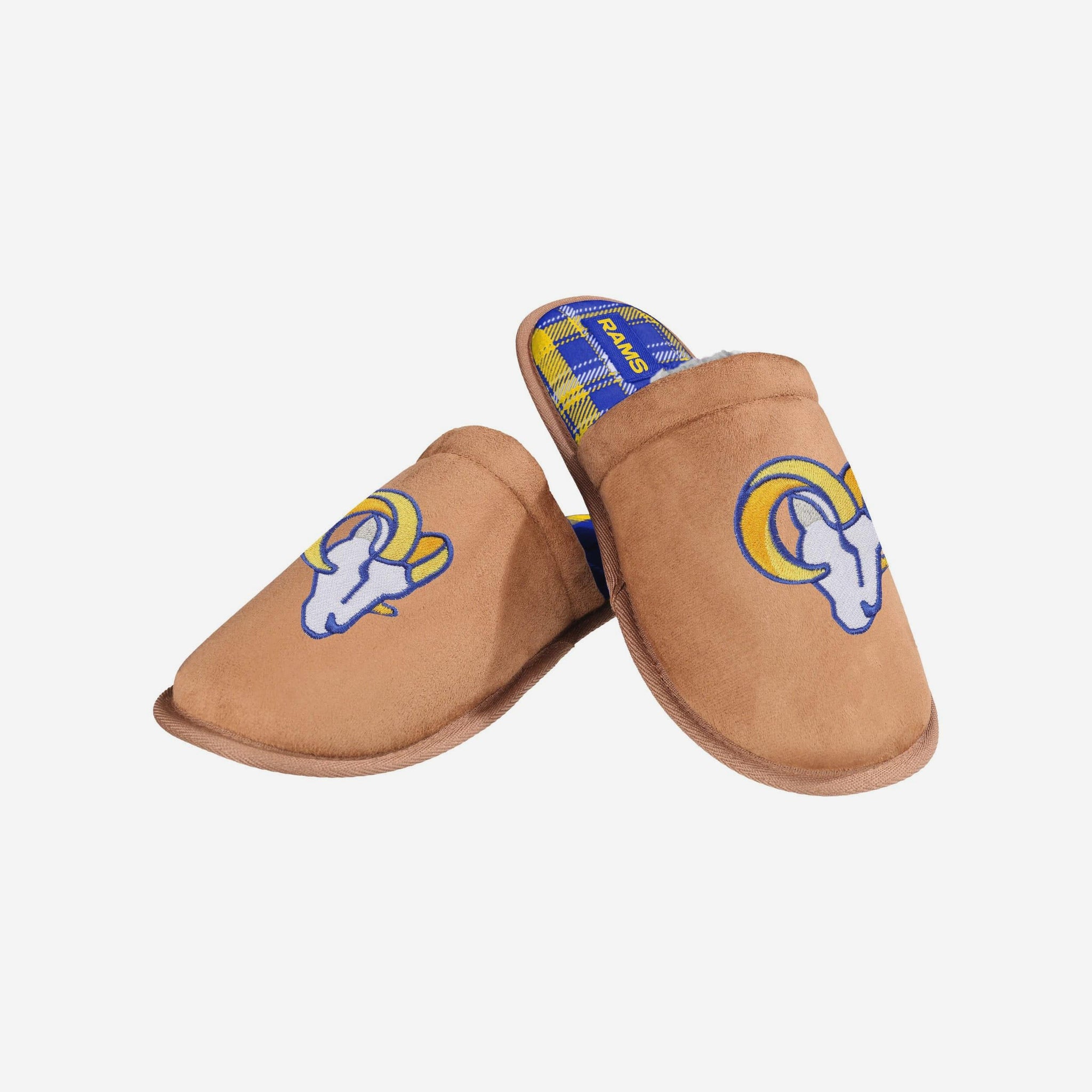 Los Angeles Rams Flannel Lined Brown Suede Scuff Slipper FOCO S - FOCO.com