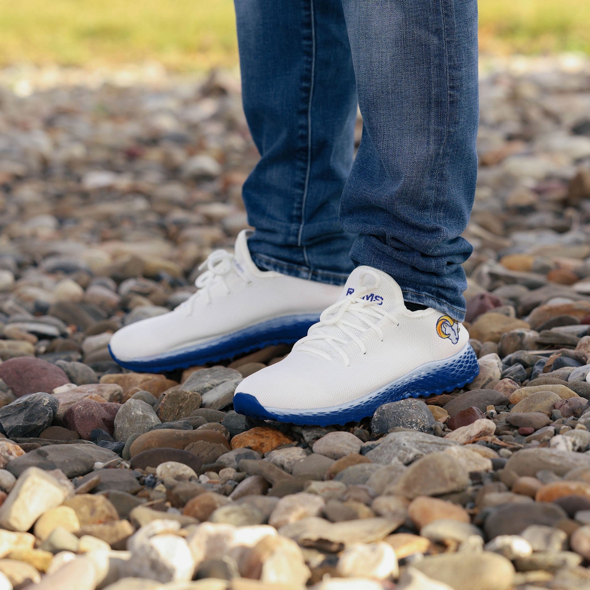 Gradient style that makes the grade. Make a statement on gamedays when you step into the building in these Los Angeles Rams Gradient Midsole White Sneakers.