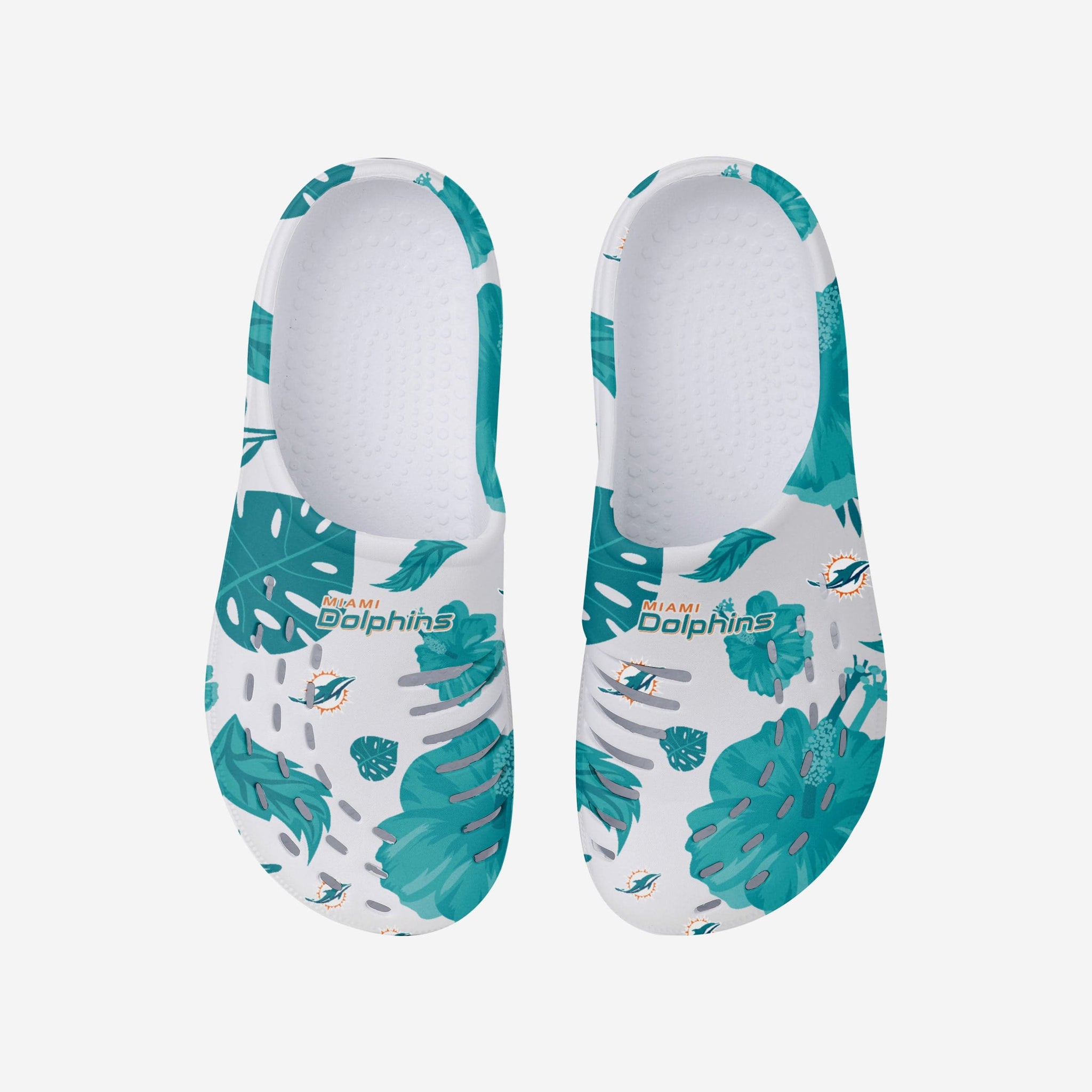 When you're packing for your next beach trip, make sure your team spirit isn't left at home. These Miami Dolphins Women's Floral White Clogs have you covered!