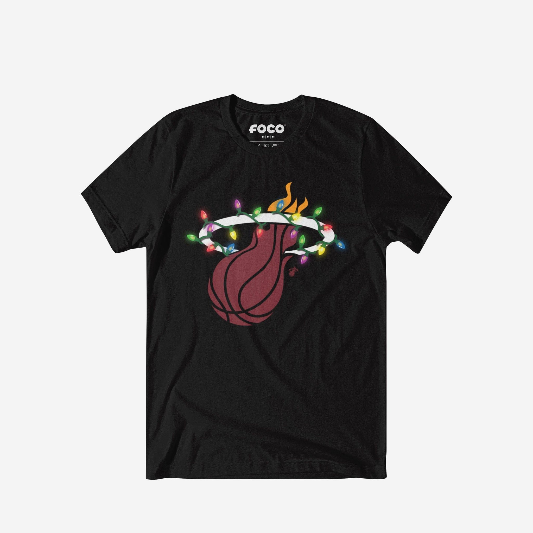 Merry, bright, and full of team spirit! Let your fandom light the way to a legendary holiday season with this Miami Heat Primary Logo Holiday Lights T-Shirt.