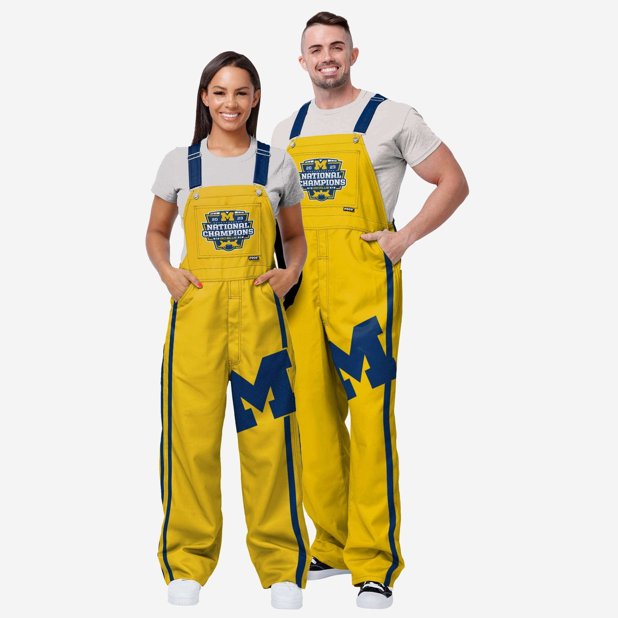 The confetti has fallen, the trophy has been hoisted, and now it's time to party in style and team spirit! Boast the wardrobe of a winner with these Michigan Wolverines 2023 Football National Champions Men's Team Stripe Bib Overalls!