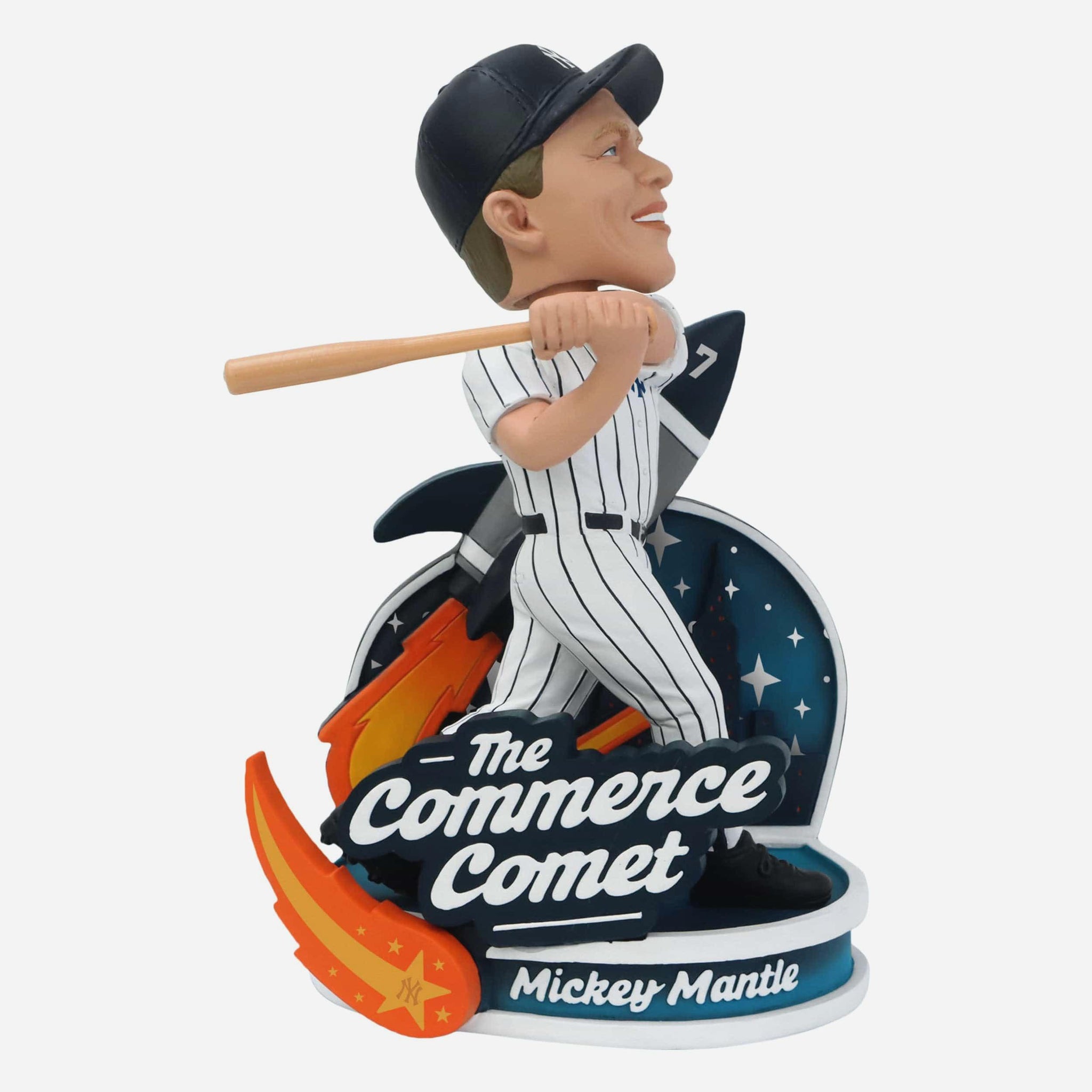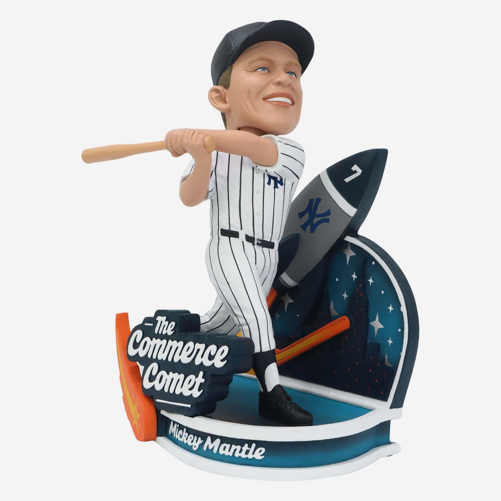 The Commerce Comet is back in bobble form! Pay tribute to a legend in your collection with this Mickey Mantle New York Yankees Nickname Bobblehead.