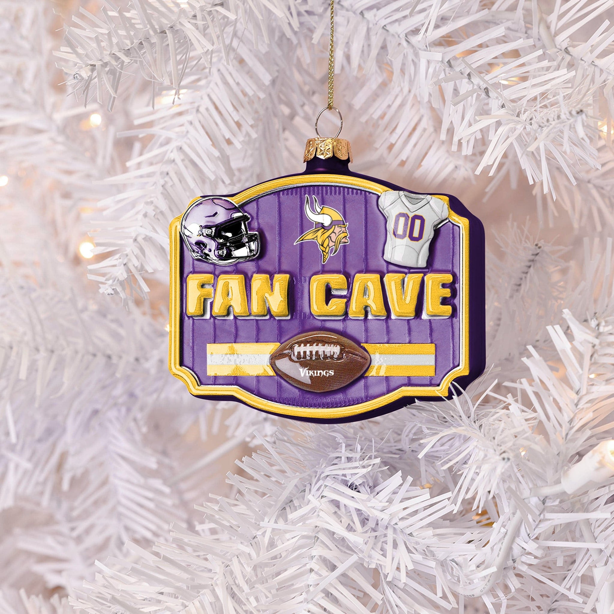 Celebrate the most wonderful time of the year with the ultimate fan flair! From kickoff to Christmas morning, this Minnesota Vikings Blown Glass Fan Cave Ornament scores big with team logos, helmets, and jersey details in a premium blown glass finish.