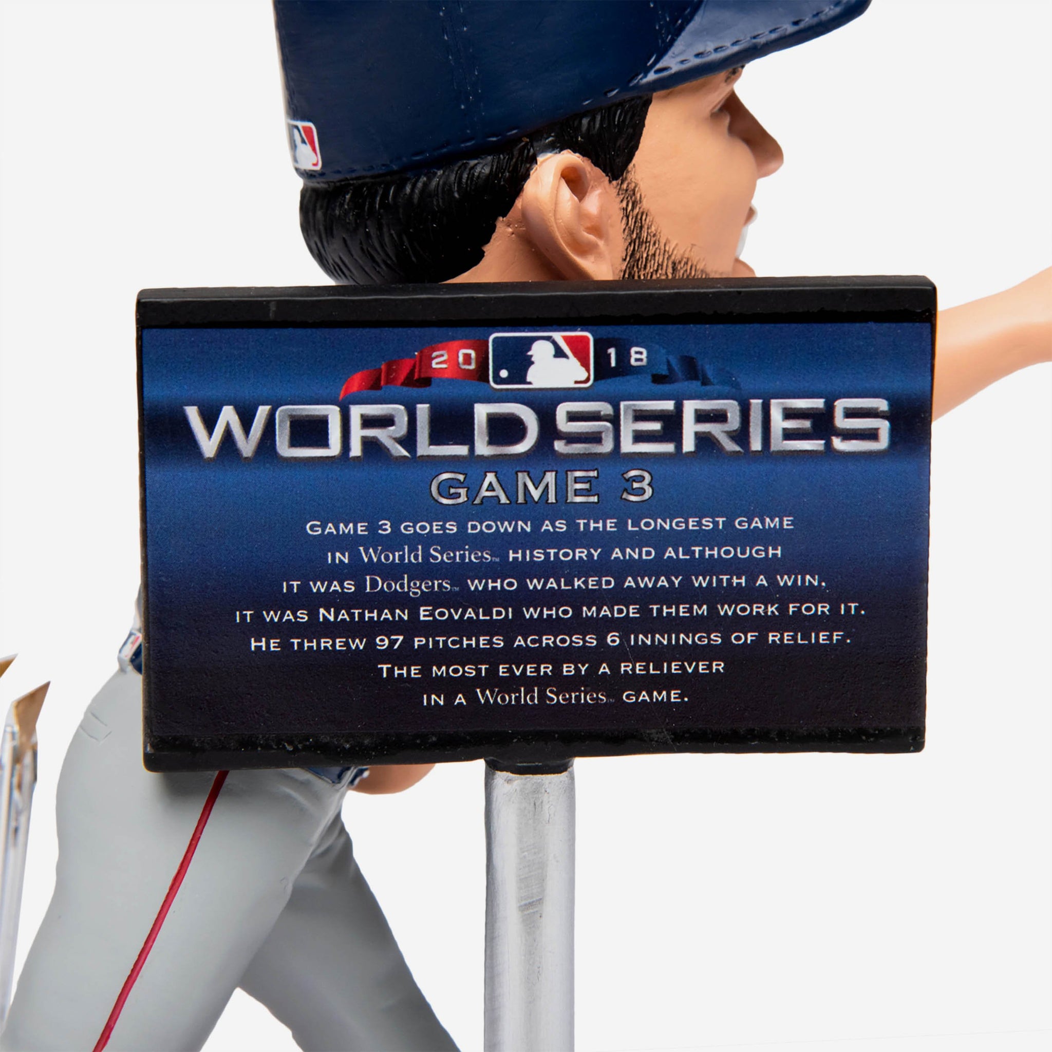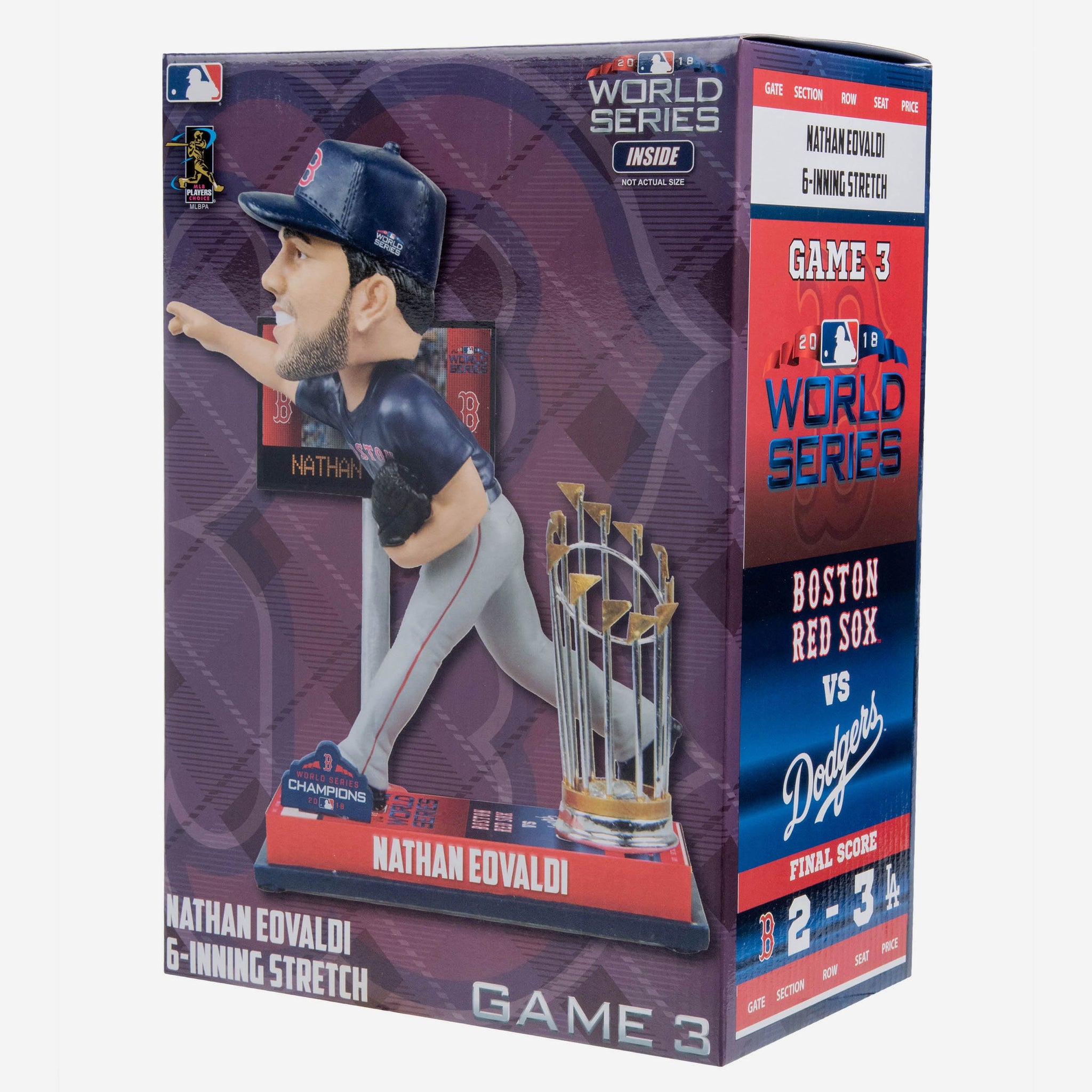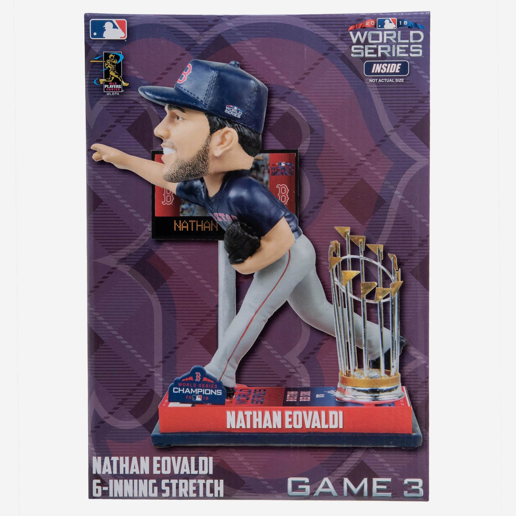 Called upon on the road in extra innings on short rest with the Red Sox dealing with a depleted bullpen, Nathan Eovaldi dazzled the fans watching Game 3 in the wee hours of the morning, putting on one of the grittiest performances in recent baseball memory. Capture that moment forever and celebrate the Red Sox' World Series victory with this Nathan Eovaldi Boston Red Sox World Series Special Moments Game 3 Bobblehead.