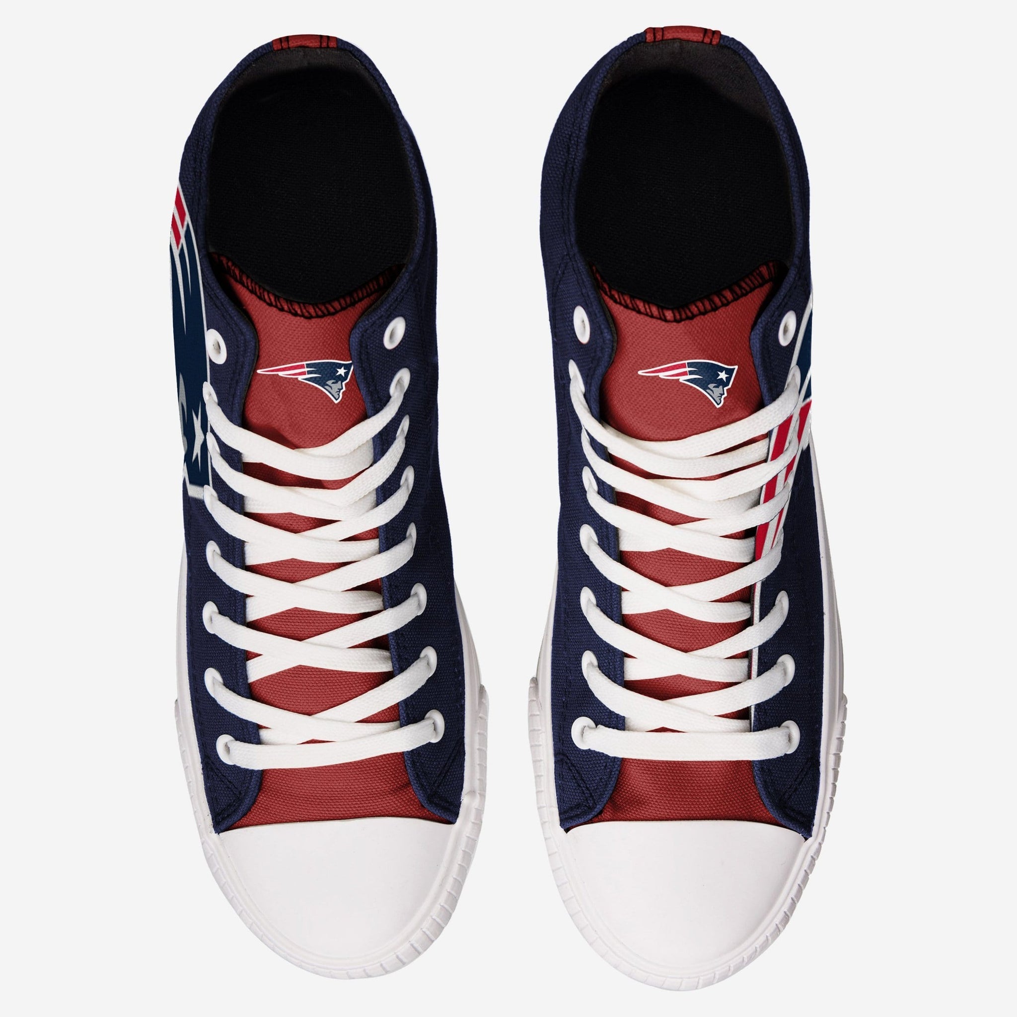 Right now, it's a day ending in "y", which means it's a beautiful day to be a fan. Get ready and get on your feet - a task made much easier when your feet are in these New England Patriots Mens High Top Big Logo Canvas Shoes. No one will be questioning where your allegiances lie.