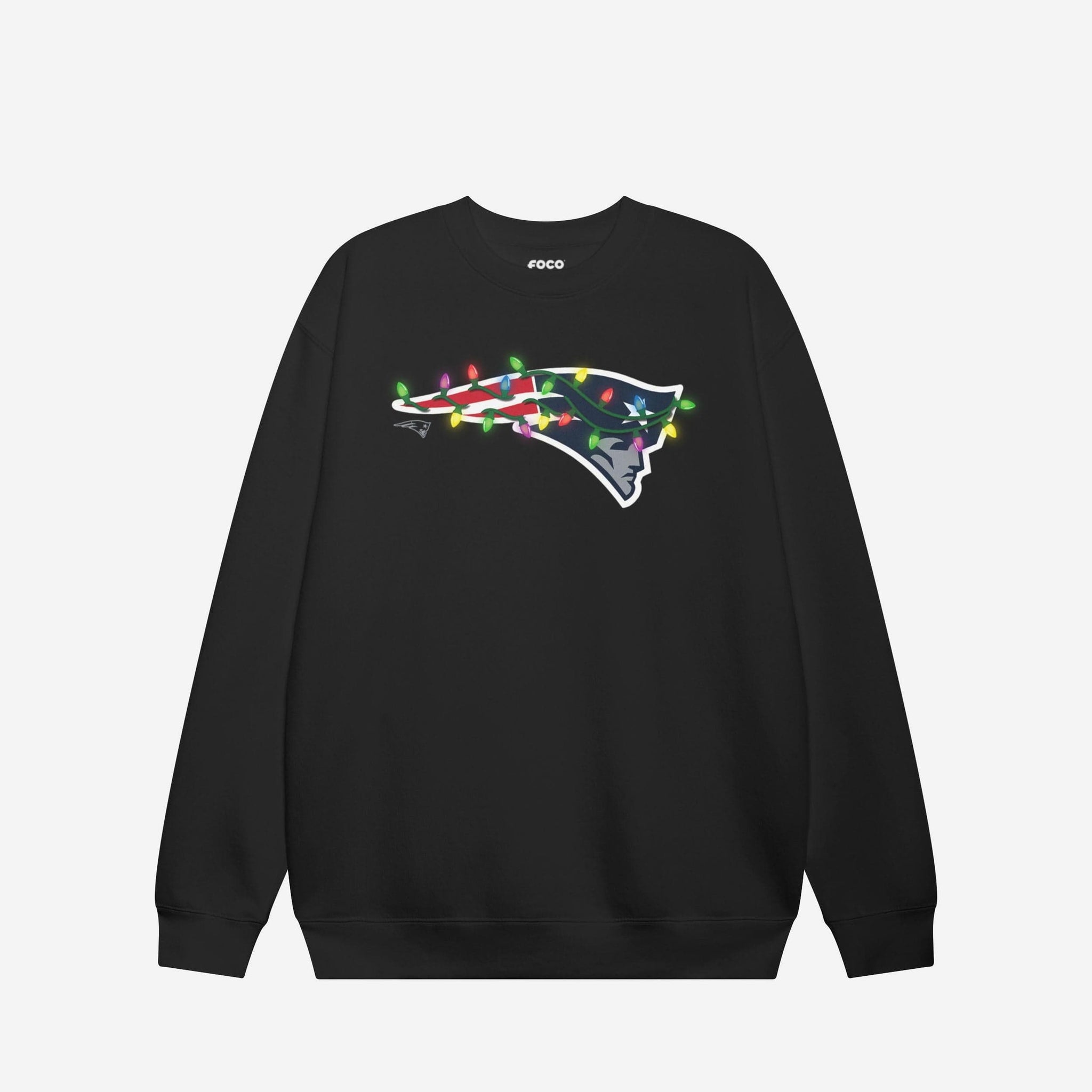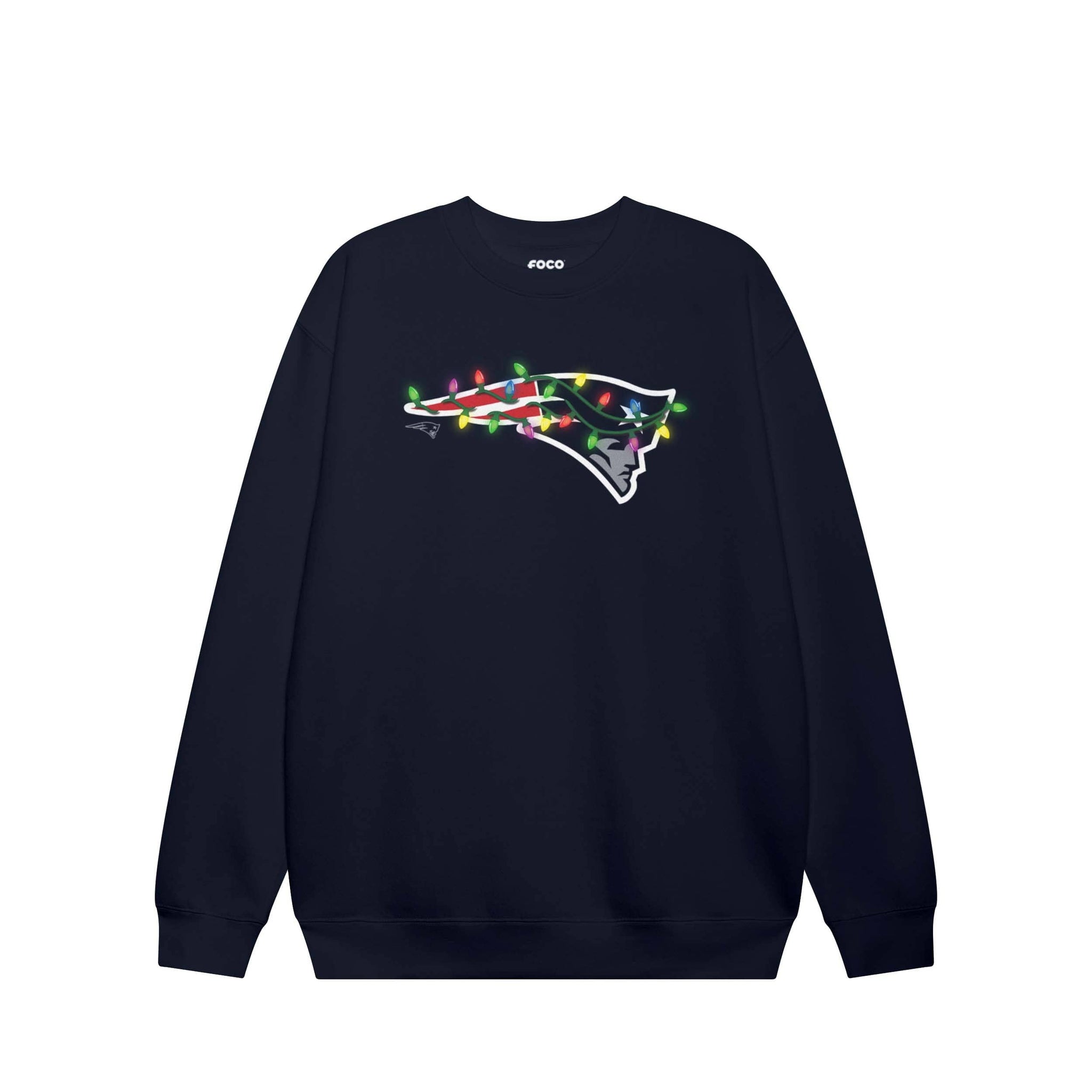 New England Patriots Primary Logo Holiday Lights Crew Neck Sweatshirt FOCO Navy S - FOCO.com