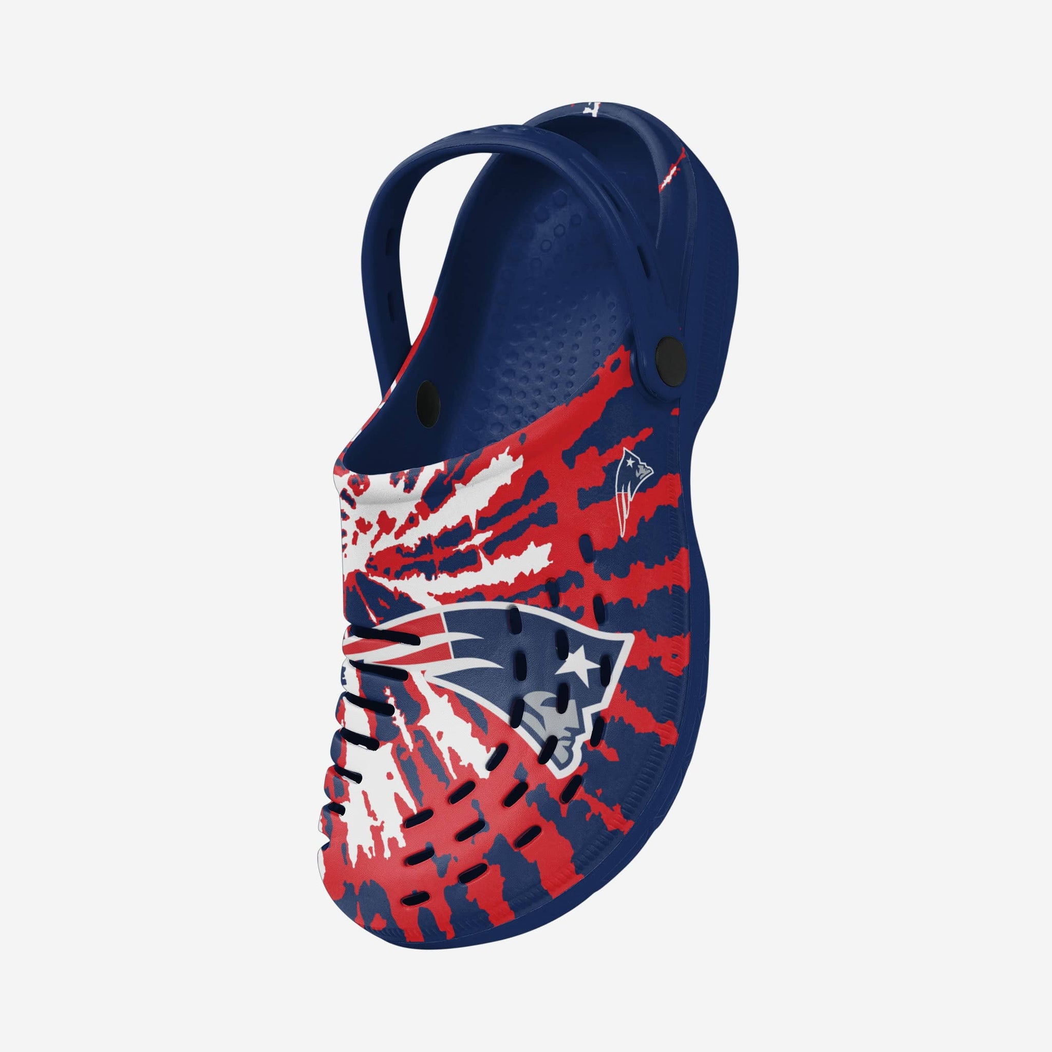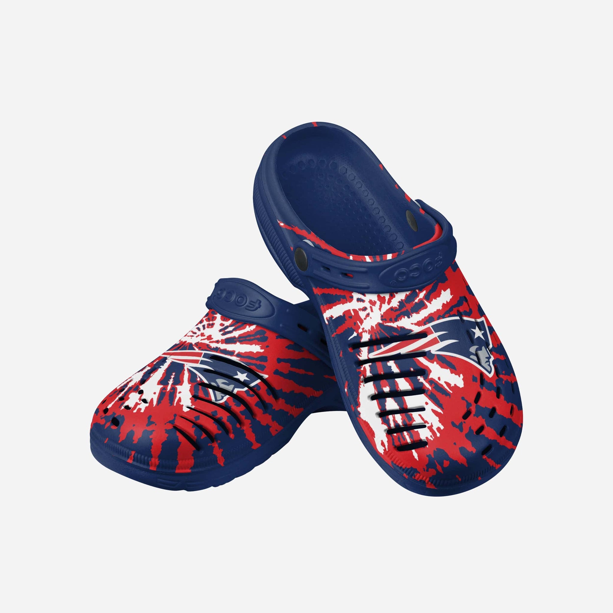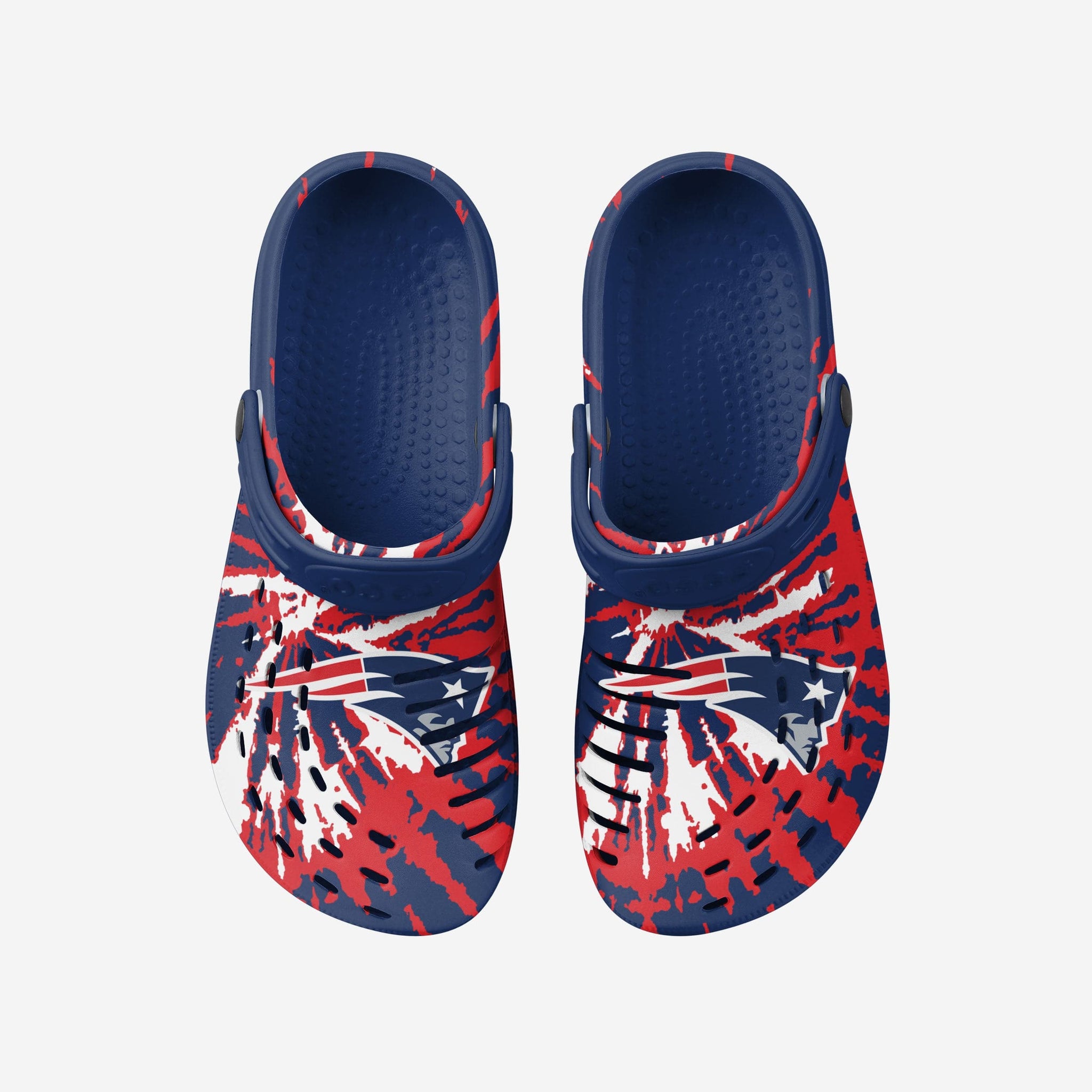 Enjoy a heaping helping of groovy goodness by standing out in these New England Patriots Tie-Dye Clogs with Straps.