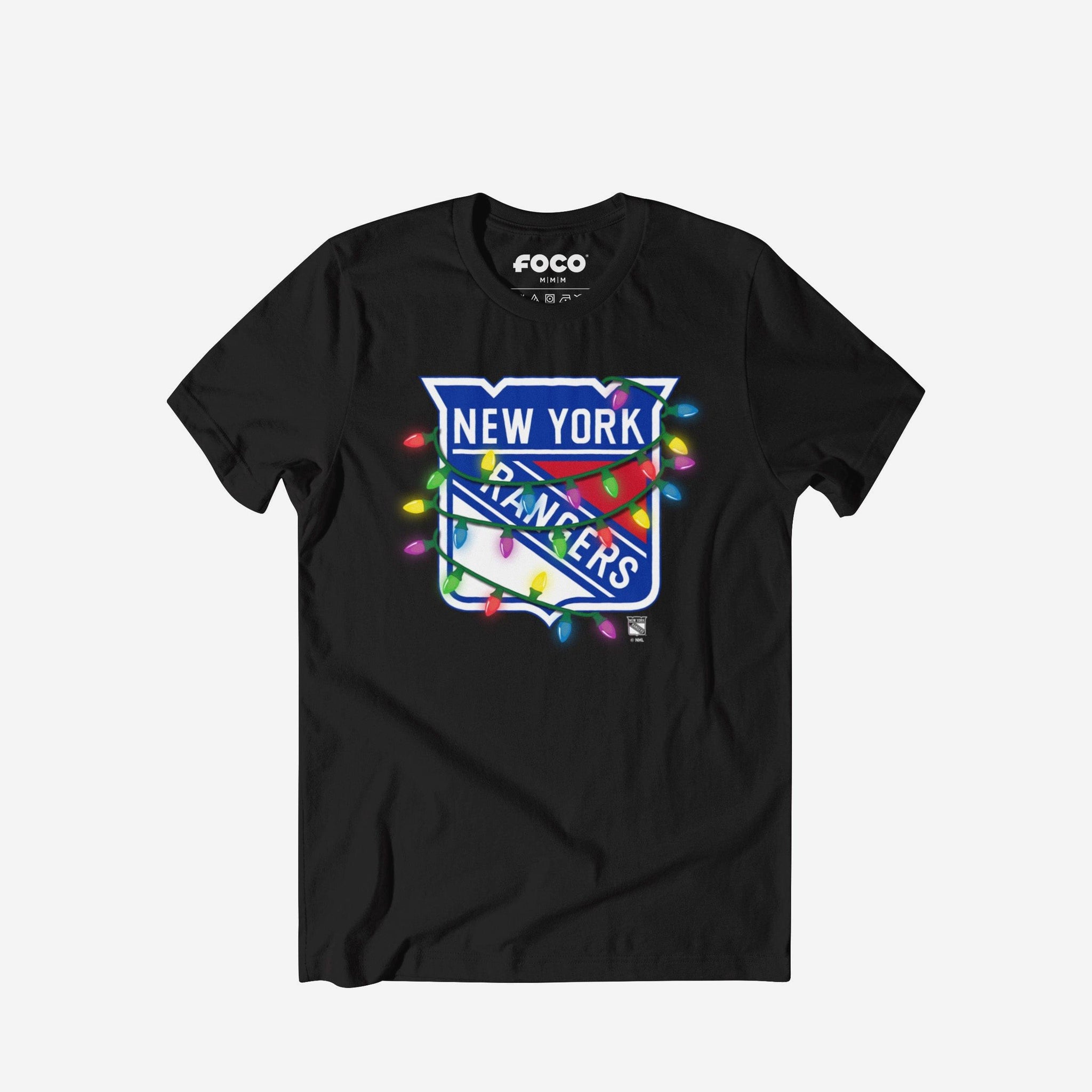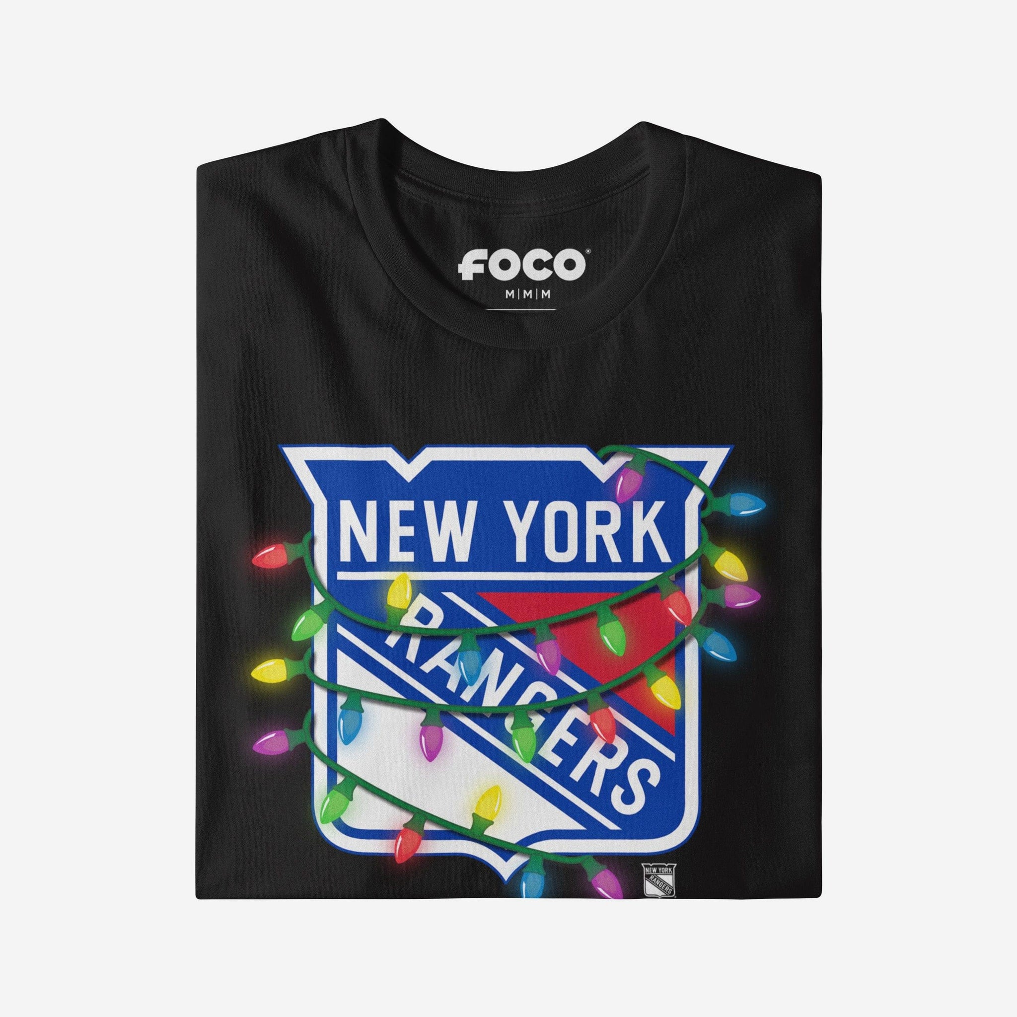 New York Rangers Primary Logo Holiday Lights T-Shirt FOCO S - FOCO.com
