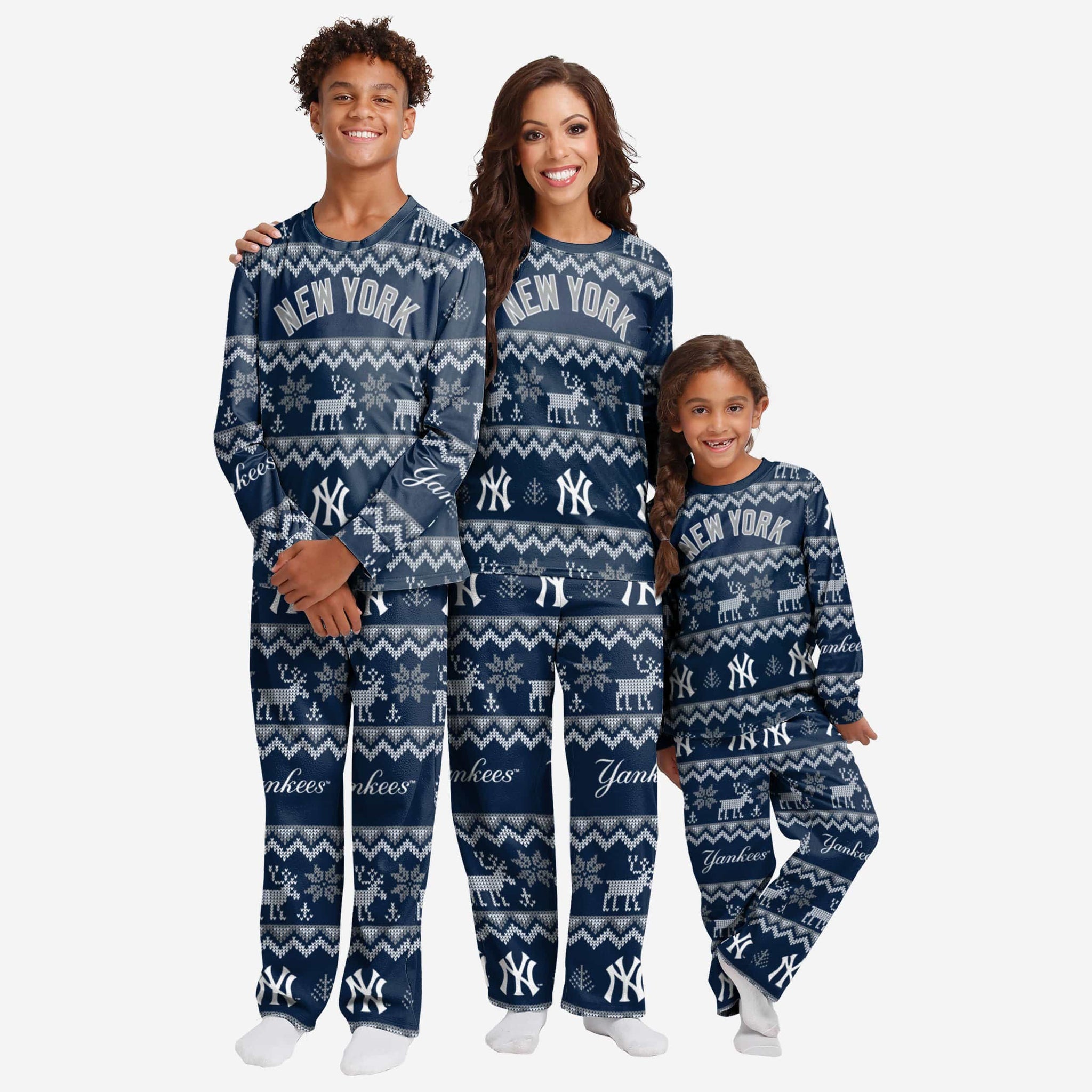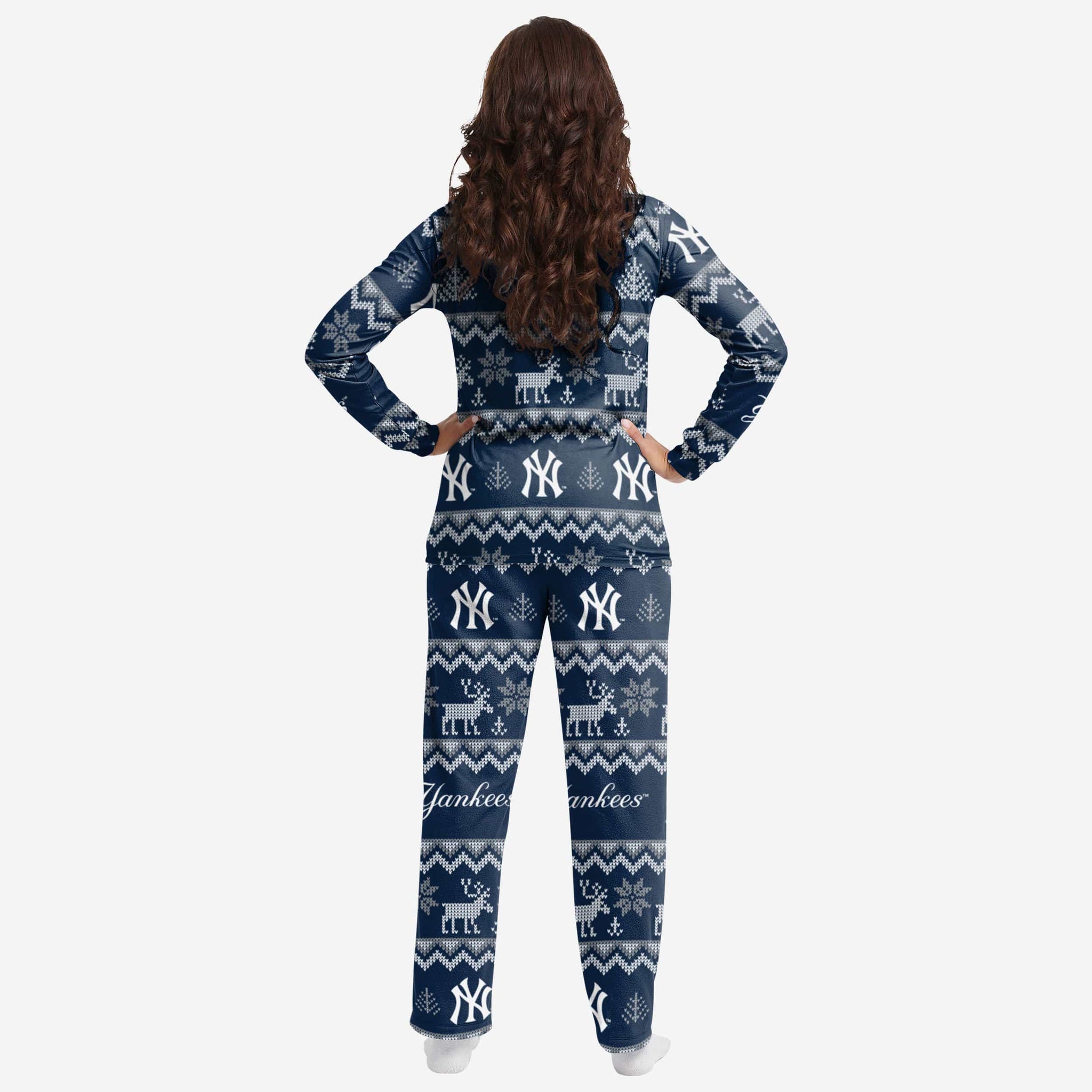 Get some matching family pajamas and dress to impress this holiday season! You won't want to miss these women's team pajamas! These women's PJ's are comfortable and show off your team spirit in the form of some sweet women's jammies. Introducing the New York Yankees Women's Ugly Pattern Family Holiday Pajamas! Don't forget to take your holiday photo with the whole family wearing matching Christmas pajamas!