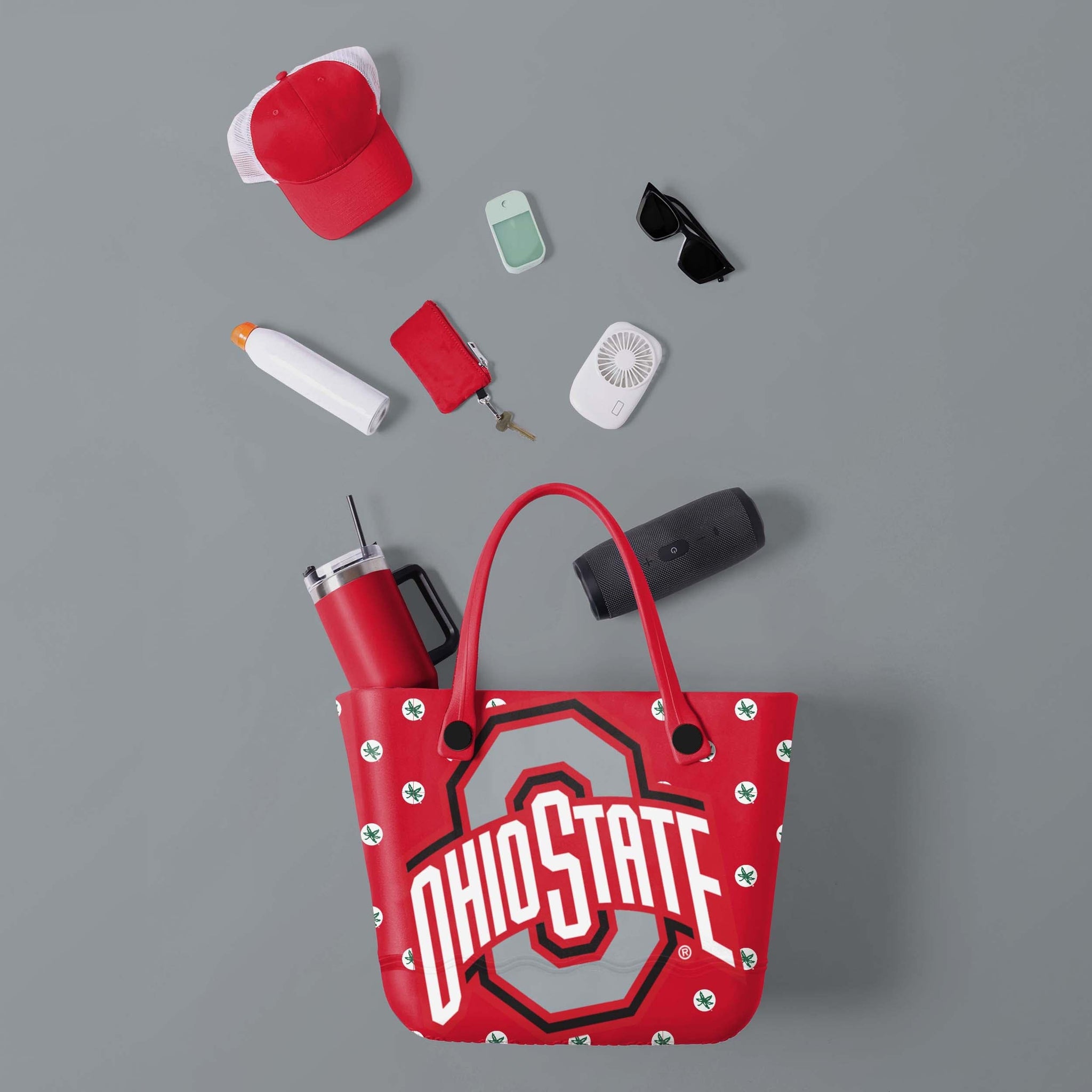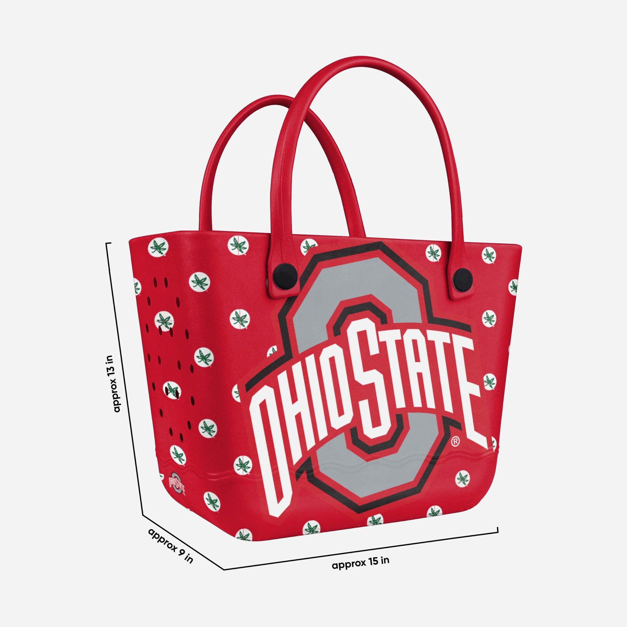 Looking for a bag as durable and dependable as your team spirit? You've found it. Whether you're running the tailgate, hitting the beach, or going on any adventure, pack up your fandom and take it on the go with this Ohio State Buckeyes Big Logo Mini Print Tailgate Tote Bag.
