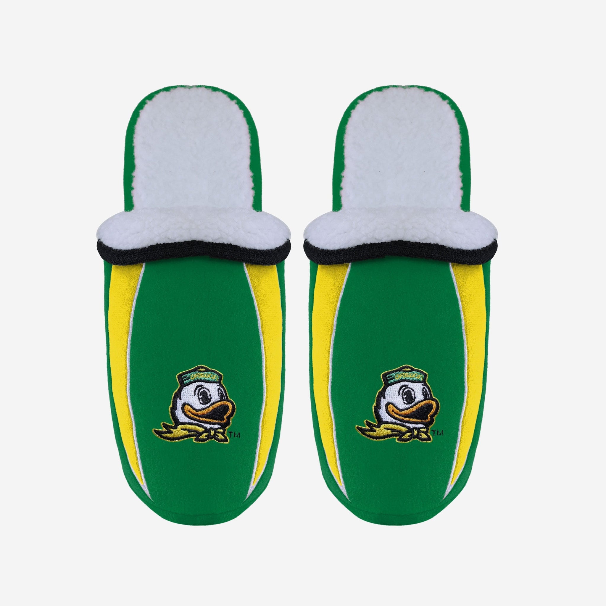 Kicking back, putting your feet up and watching the big game on the big screen in the fancave is great. You know what's even greater? Doing all that while wearing these Oregon Ducks Men's Sherpa Slide Slippers. Step into some serious fan comfort.