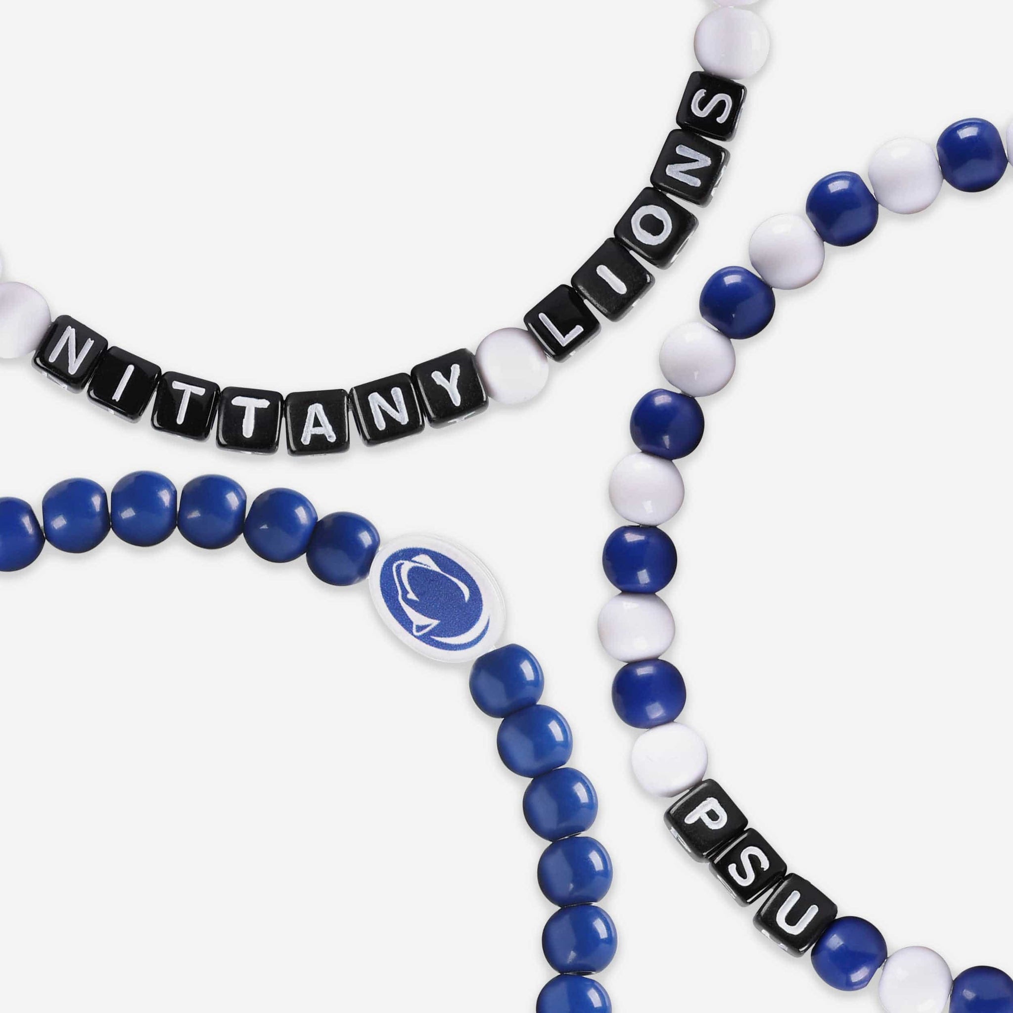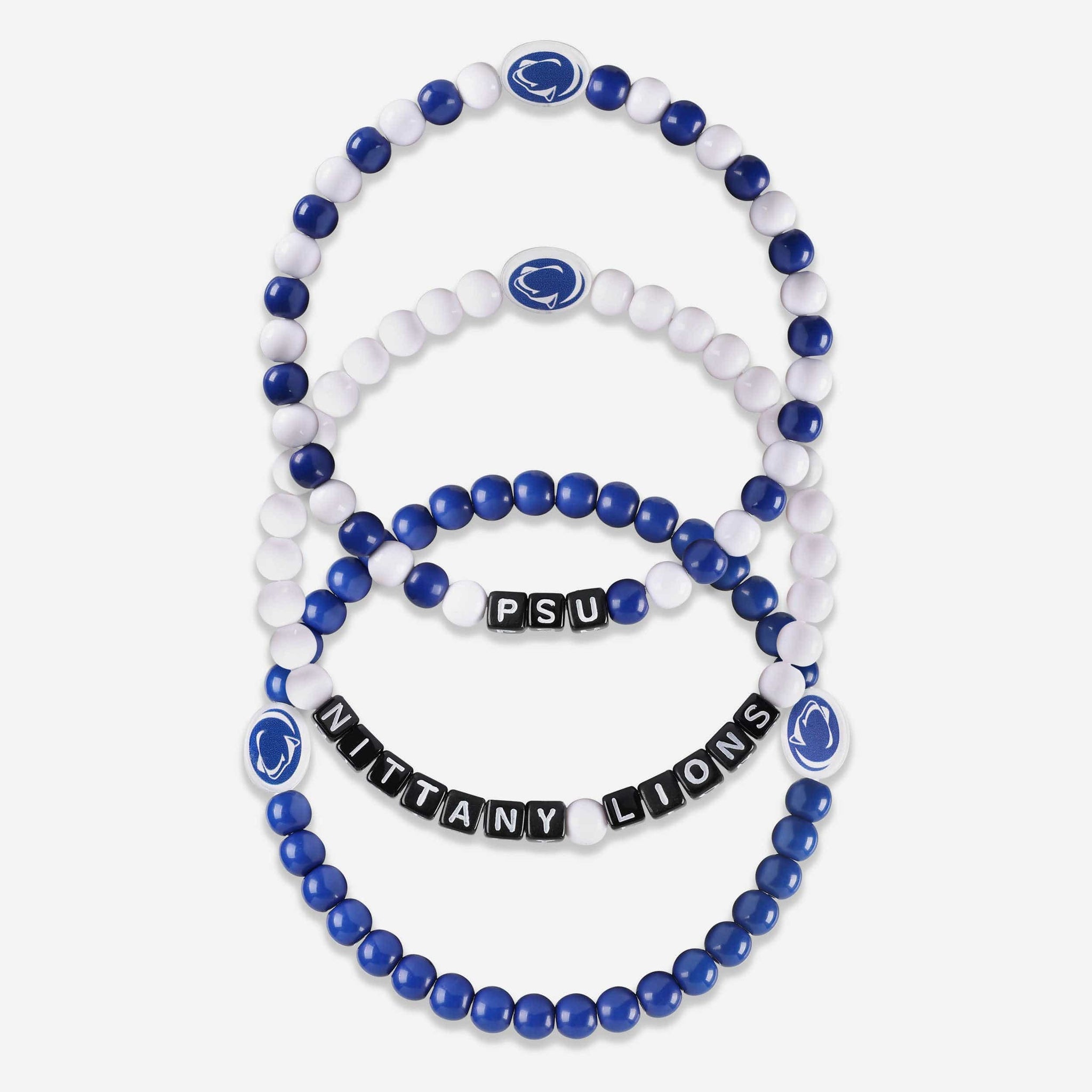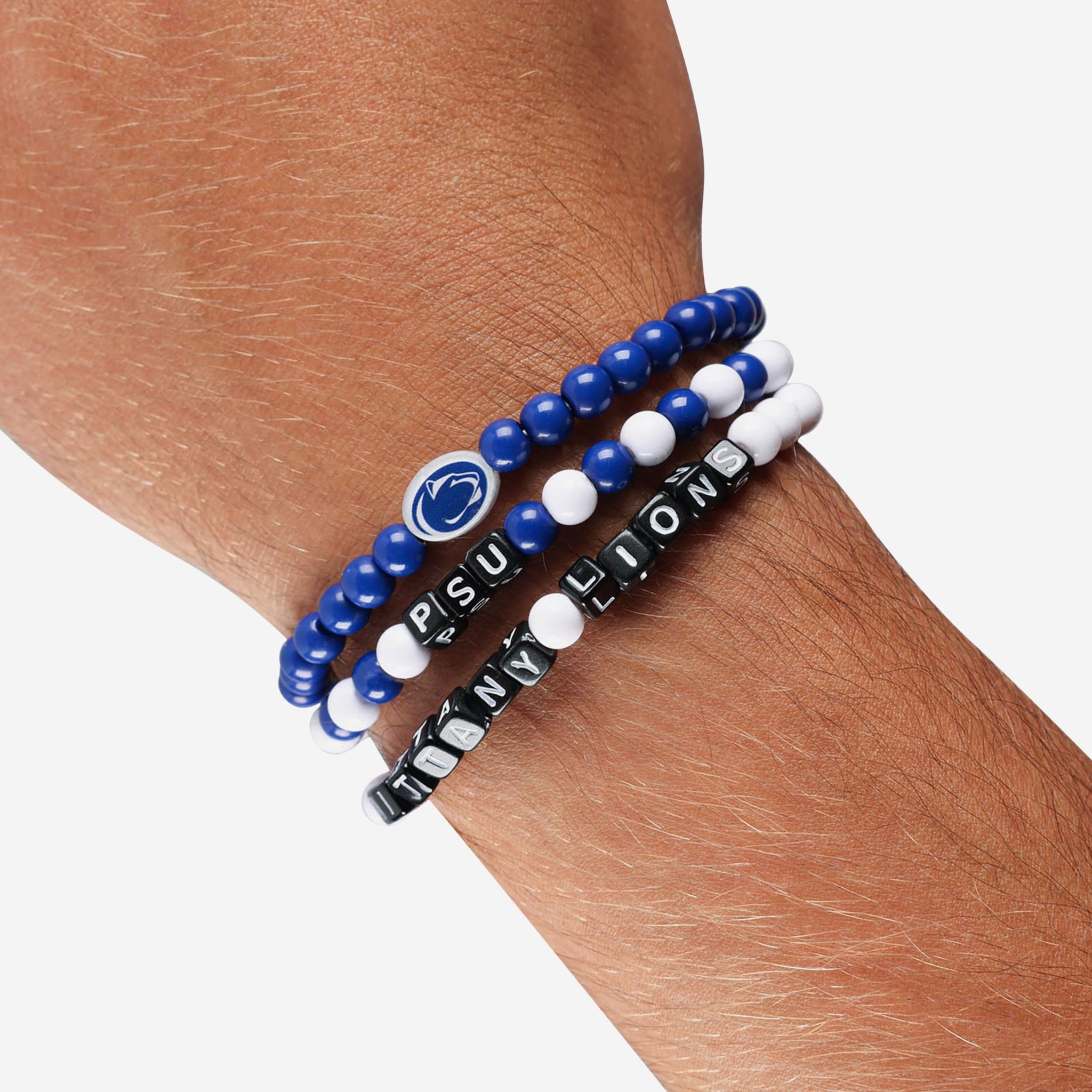 A whole new way to rep the team in style is here. Step up your fan fashion sense with this Penn State Nittany Lions 3 Pack Beaded Friendship Bracelet. These matching friendship bracelets have an all-over team-colored design and team logo displays, which makes them the perfect way to show your support for the Penn State Nittany Lions on gamedays and every day in between.